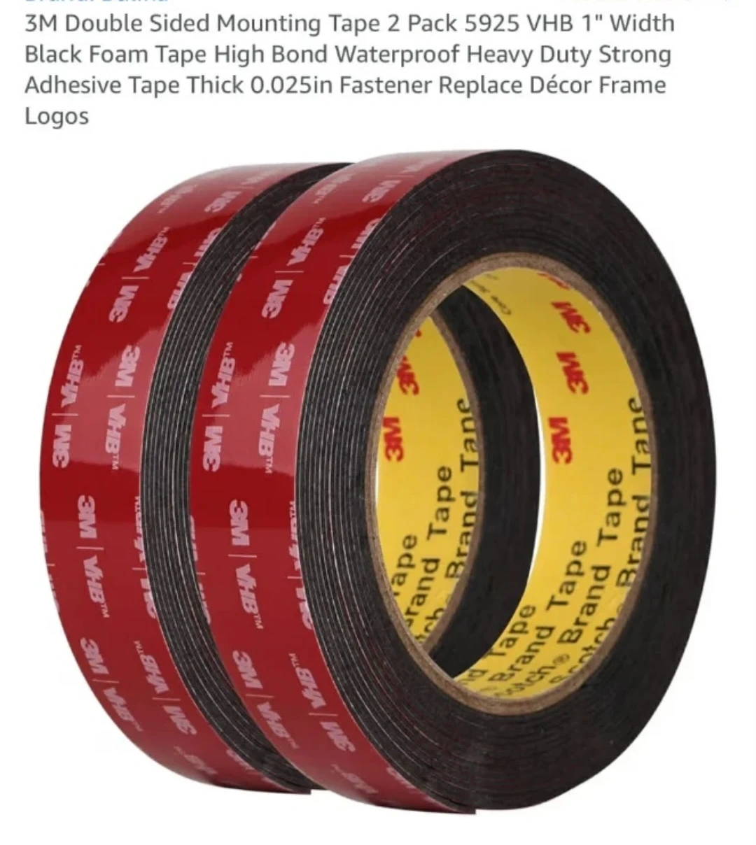 3M VHB 1" width black foam mounting tape. High bond, waterproof, and strong adhesive. Replaces fasteners and décor frames.