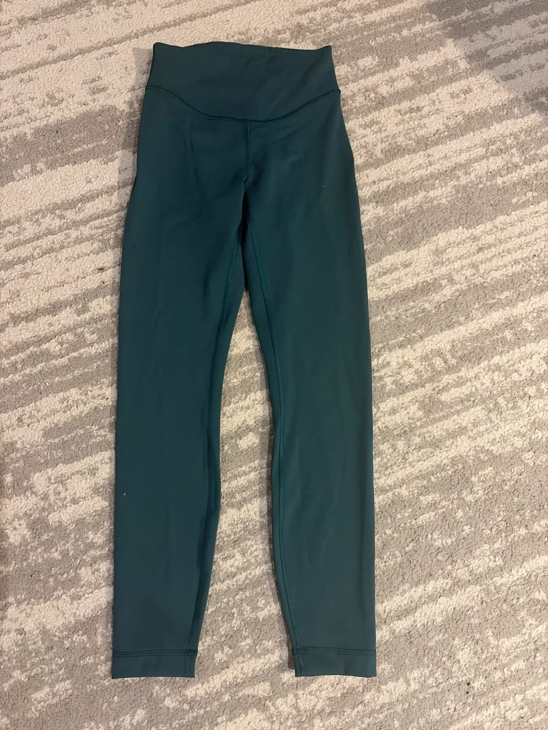 Selling a pair of Lululemon leggings in a lovely dark green colour! They're size 4, in great shape and ready for a new owner. Perfect for workouts or just lounging around the house. They have only been worn out a couple times so basically brand new! Price is negotiable.