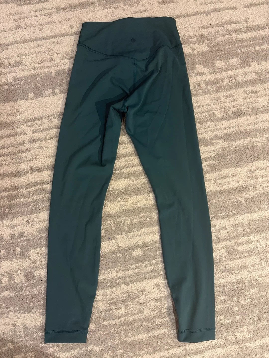 Selling a pair of Lululemon leggings in a lovely dark green colour! They're size 4, in great shape and ready for a new owner. Perfect for workouts or just lounging around the house. They have only been worn out a couple times so basically brand new! Price is negotiable.