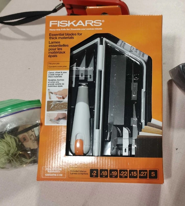 This is a new Fiskars Heavy-duty Knife Set, essential blades for thick materials. Perfect for anyone who needs precision and durability in their crafting or DIY projects. The set includes a variety of blades to suit different cutting needs.