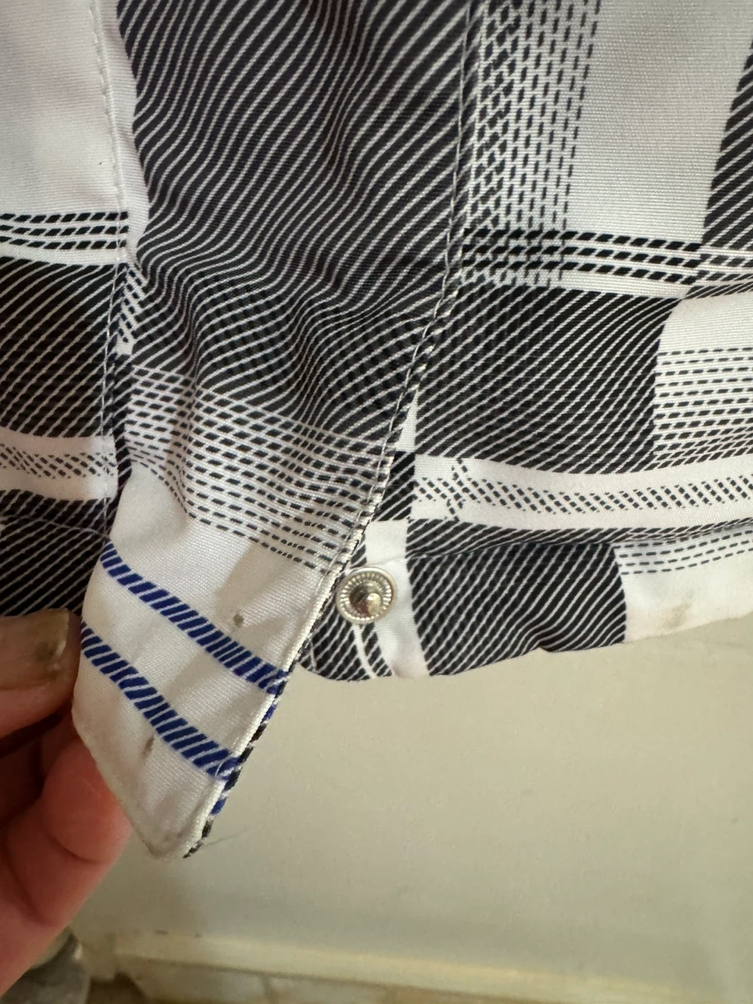 This is a ZeroXposur ski jacket in size large. It features a plaid pattern with blue accents. The jacket is made in China. Missing buttons in the last picture but not effect anything