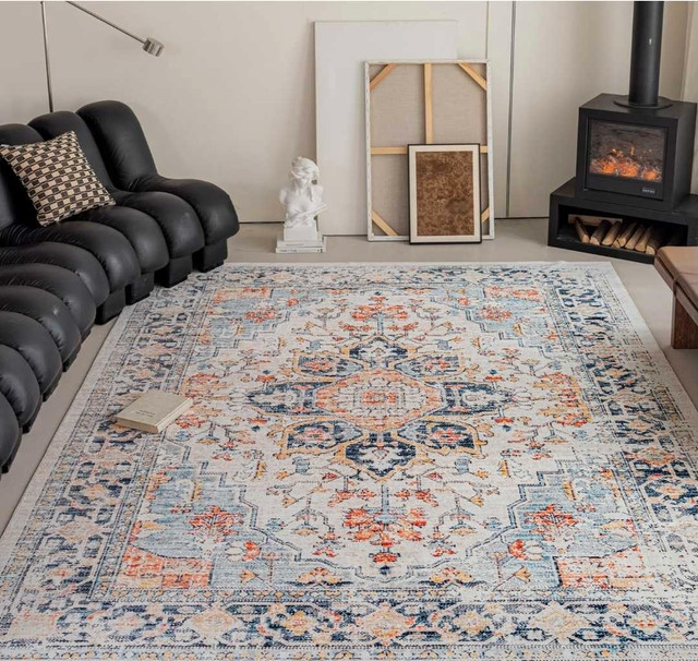 5x7 Area Rug Washable Rugs for Living Room Rug Vintage Design Boho 5x7 Rug with Non Slip Living Room Rug Bedroom Carpet Stain Resistant, Home Decor, Blue&Orange