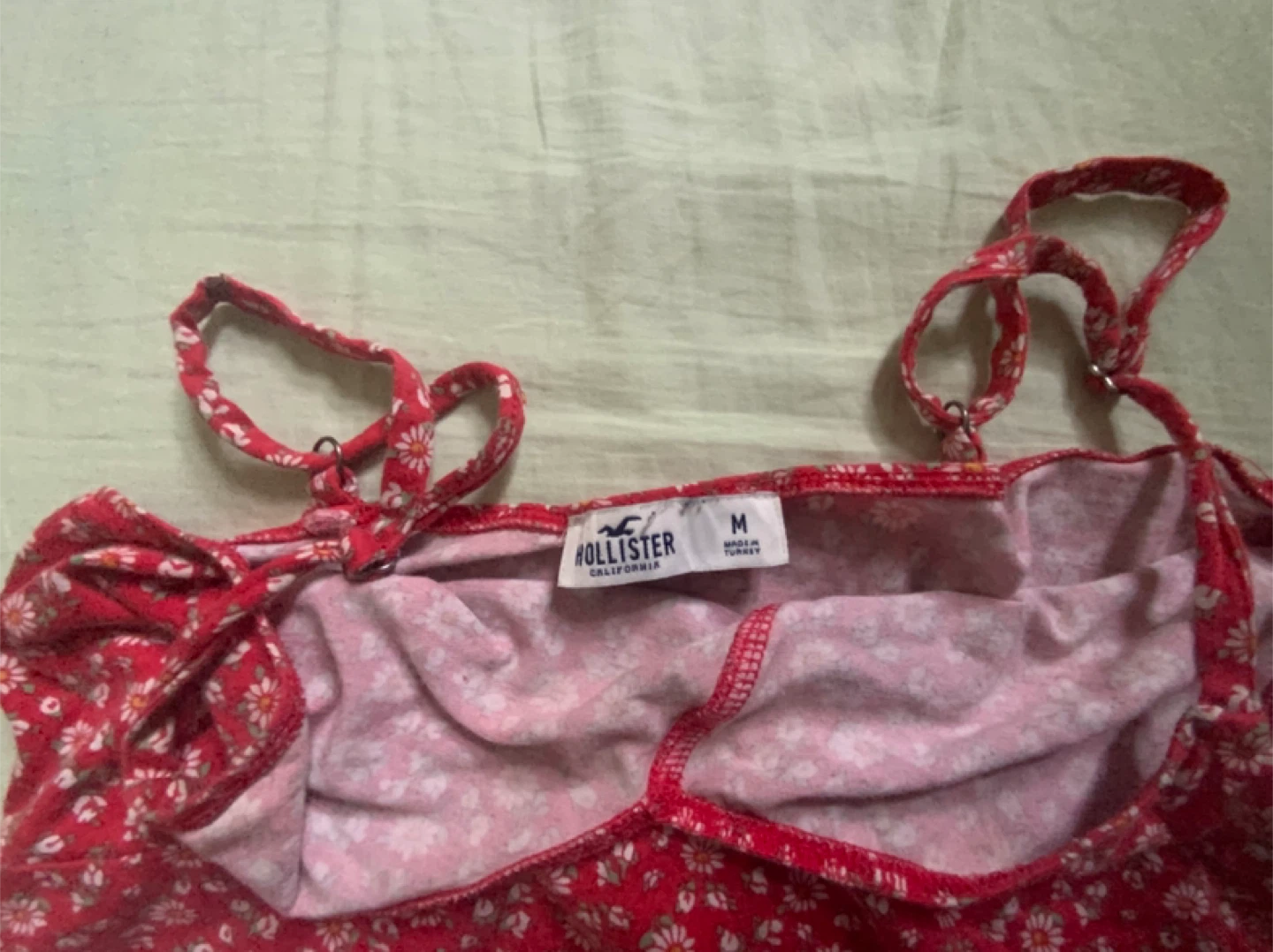 Selling a cute Hollister dress. Only worn once it’s a red dress with a white floral pattern with little greens and yellows. perfect for summer. It's a size medium and in great condition
