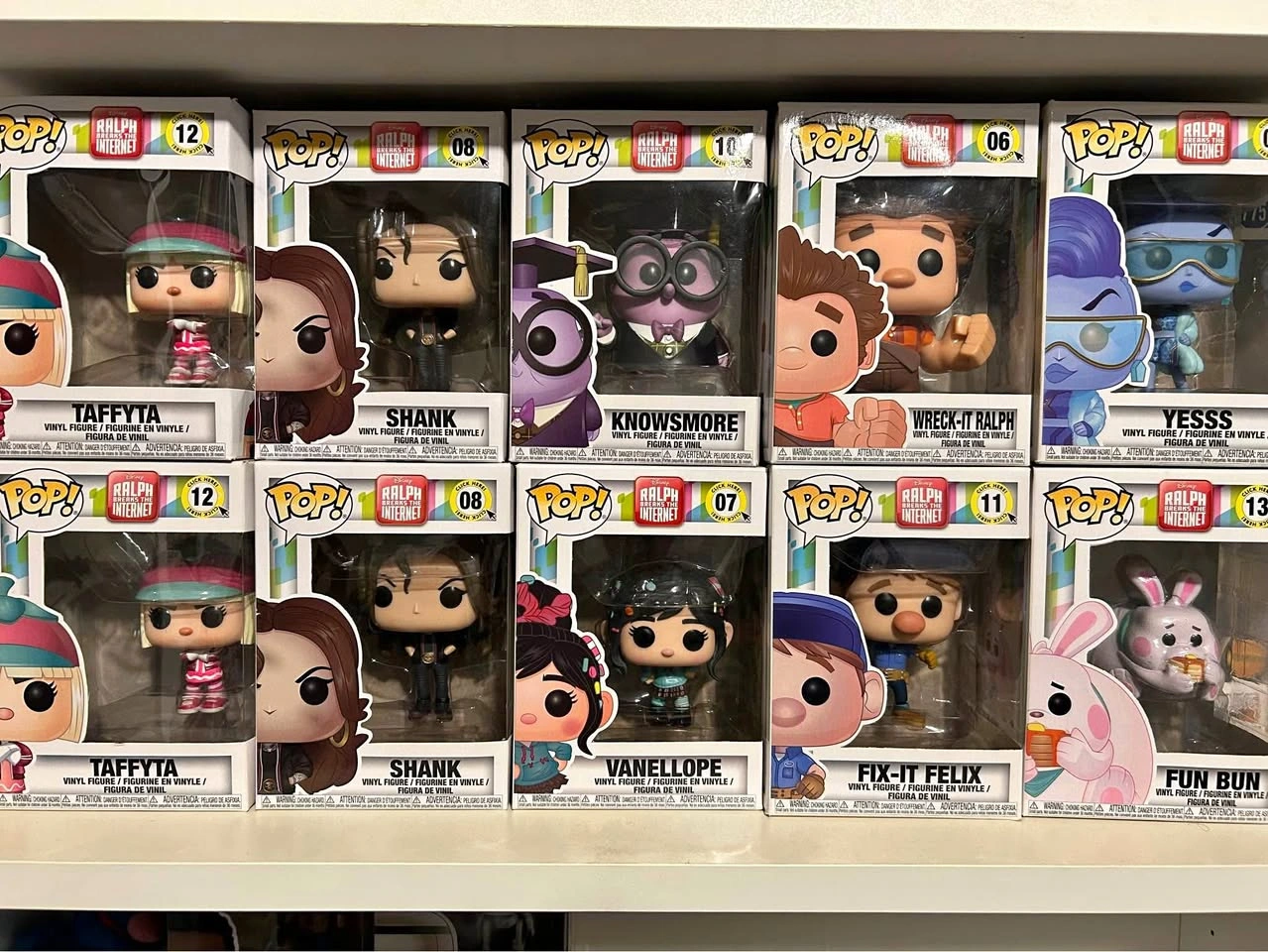 10Wreck it Ralph Funko Pops Vanellope 07 $50 Wreck it Ralph 06 $50 Fix it Felix 11 $30 Yess 09 $20 BunBun 13 $50 Shank 08 $20 Knowsmore 10 $30 Taffyta 12 $35