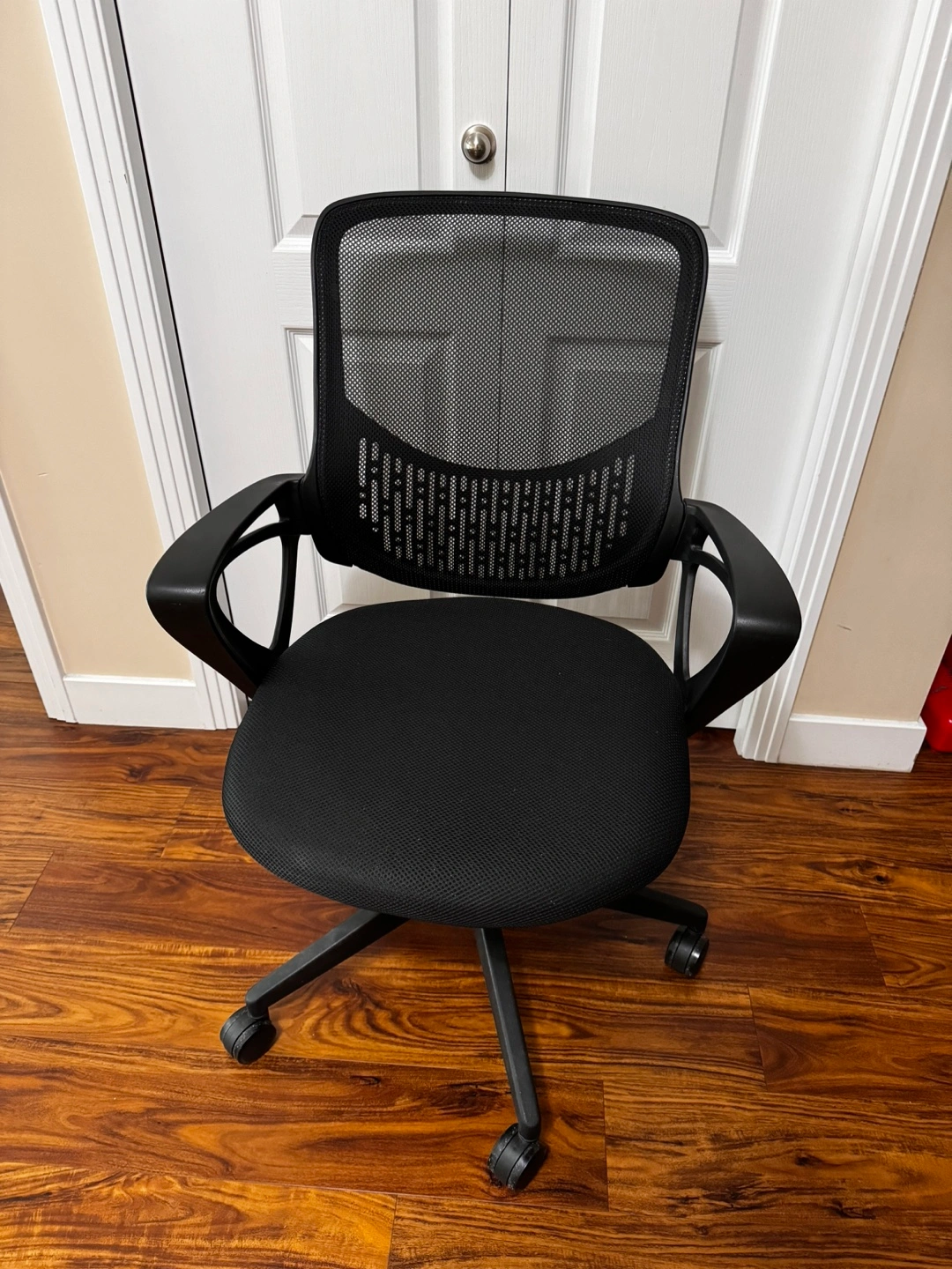 Selling a comfy black mesh office chair! It's in great shape and perfect for your home office or study space. The mesh back keeps you cool, and the adjustable height makes it easy to find the perfect fit.