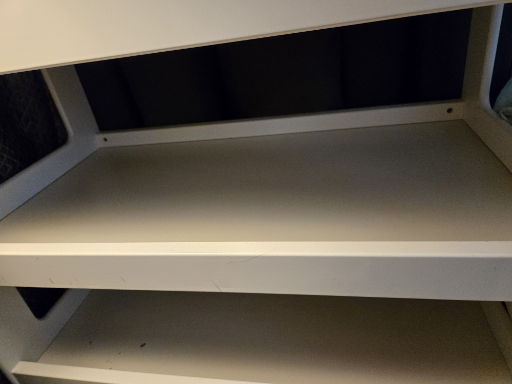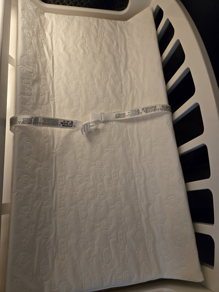 new pads always covered and kept clean and maintained. shelves helpful for diapers and wet wipes.