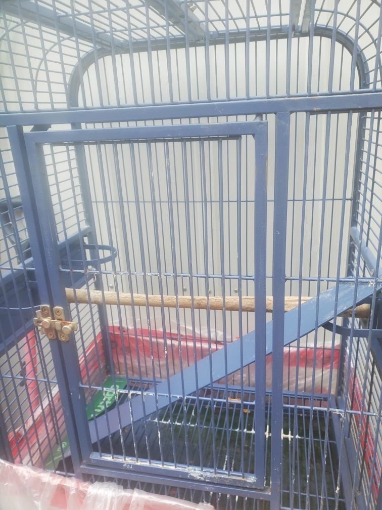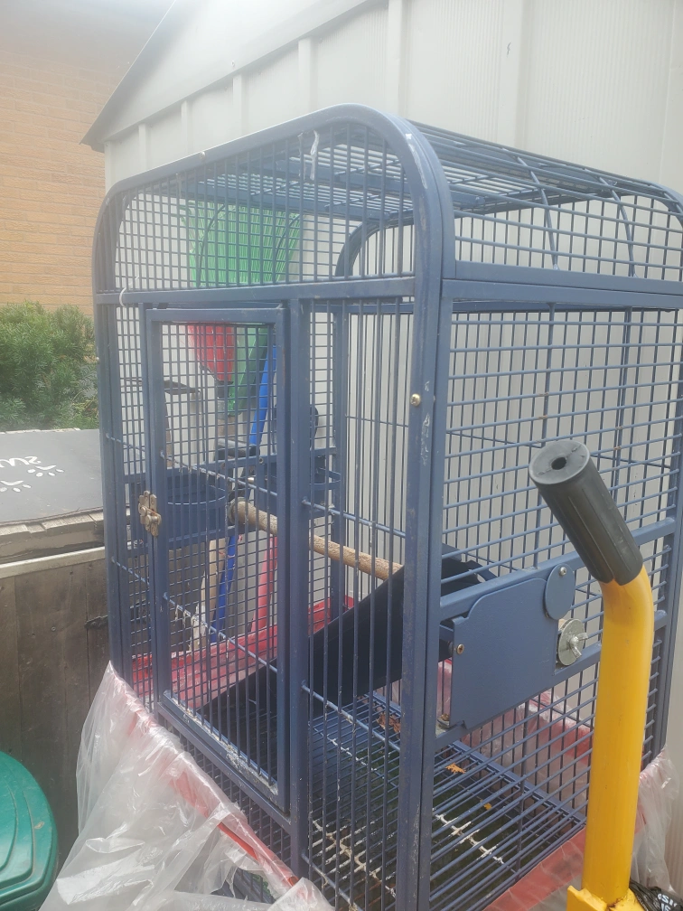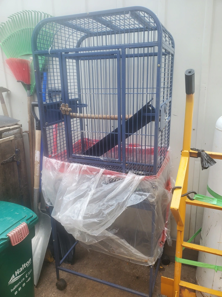 Selling a wrought iron blue cage with a stand. It's in good condition.. very sturdy very strong. needs a bit of cleaning but I tried my best to get it clean enough.. and ready for a new feathered friend.. Comes with a perch inside