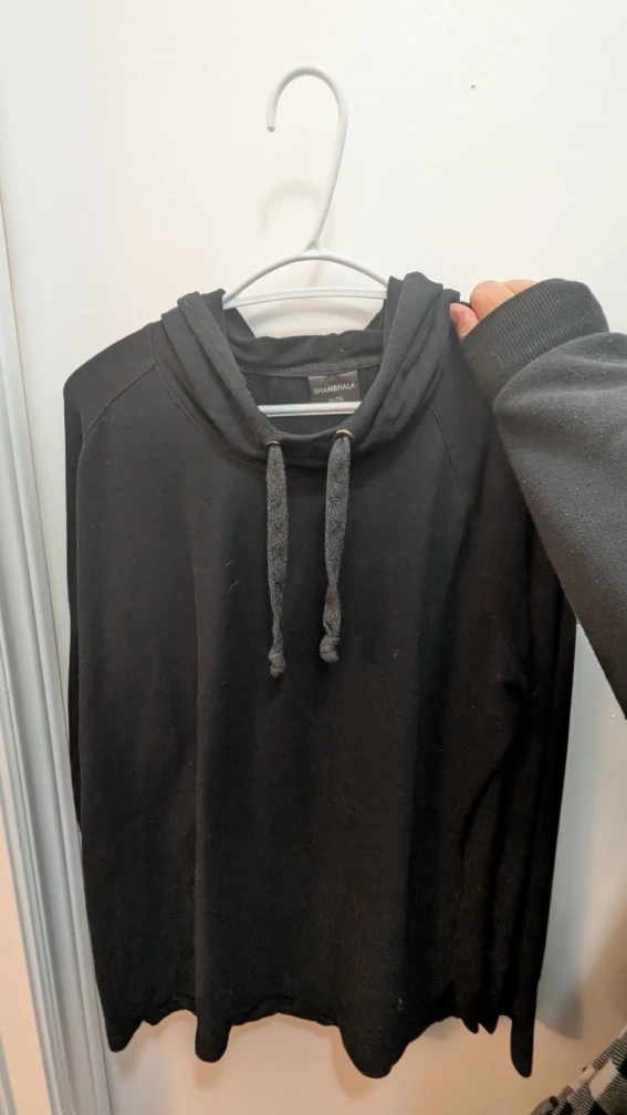 Selling a comfy black Shambhala hoodie in size XL! It's in great condition and perfect for layering or just lounging around. The hoodie features a drawstring and a relaxed fit. It’s ready for a new home!