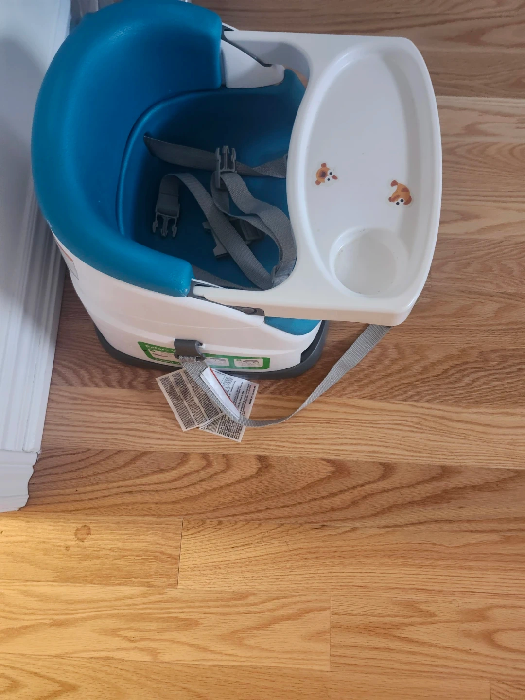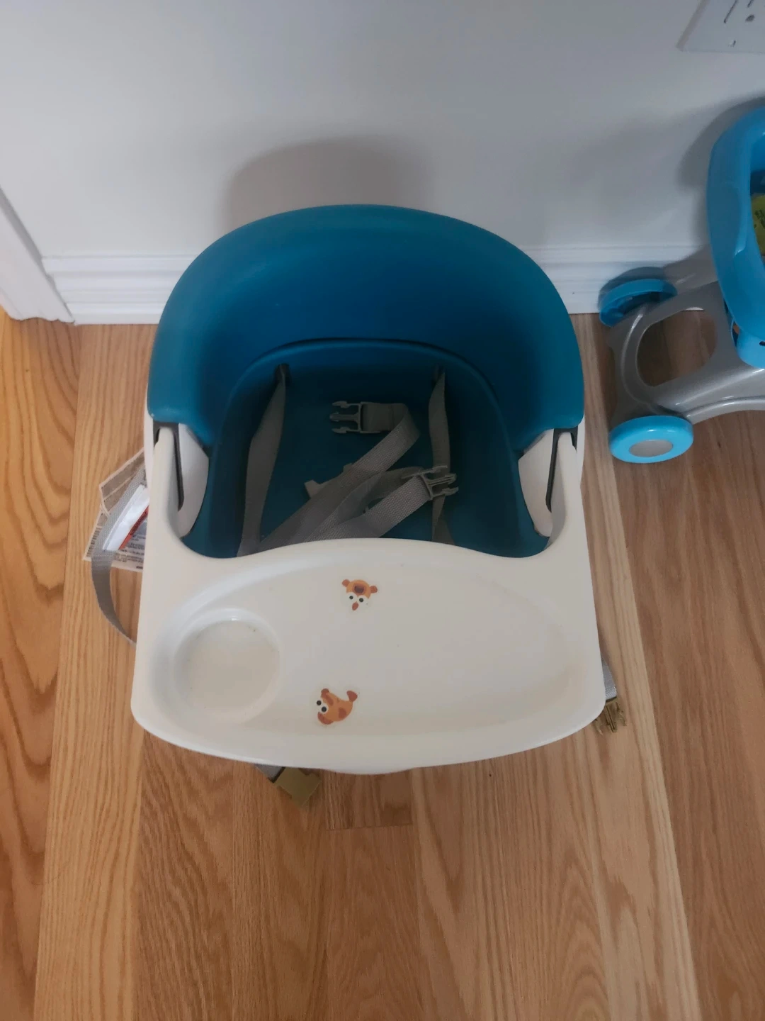 Selling an Ingenuity Baby Base 2-in-1 seat in blue and white. It's in great condition and ready for your little one! This seat is perfect for helping your baby sit up and can be used on the floor or attached to a chair. It features a convenient tray and safety straps to keep your baby secure and comfortable