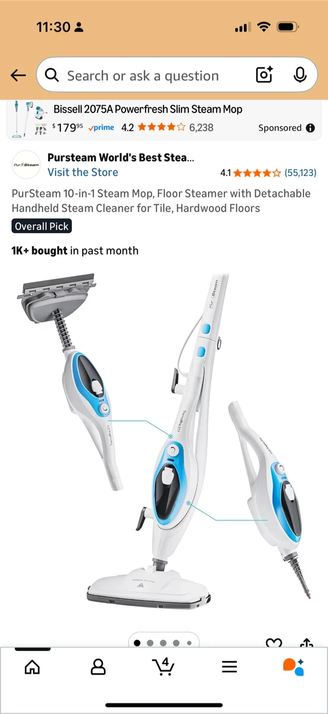 PurSteam 10-in-1 Steam Cleaner. This versatile steam mop detaches for handheld use. It's designed for cleaning tile and hardwood floors. Includes various attachments for different cleaning tasks! I used the attachments to clean my stove, bathroom and sanitize my bed.
