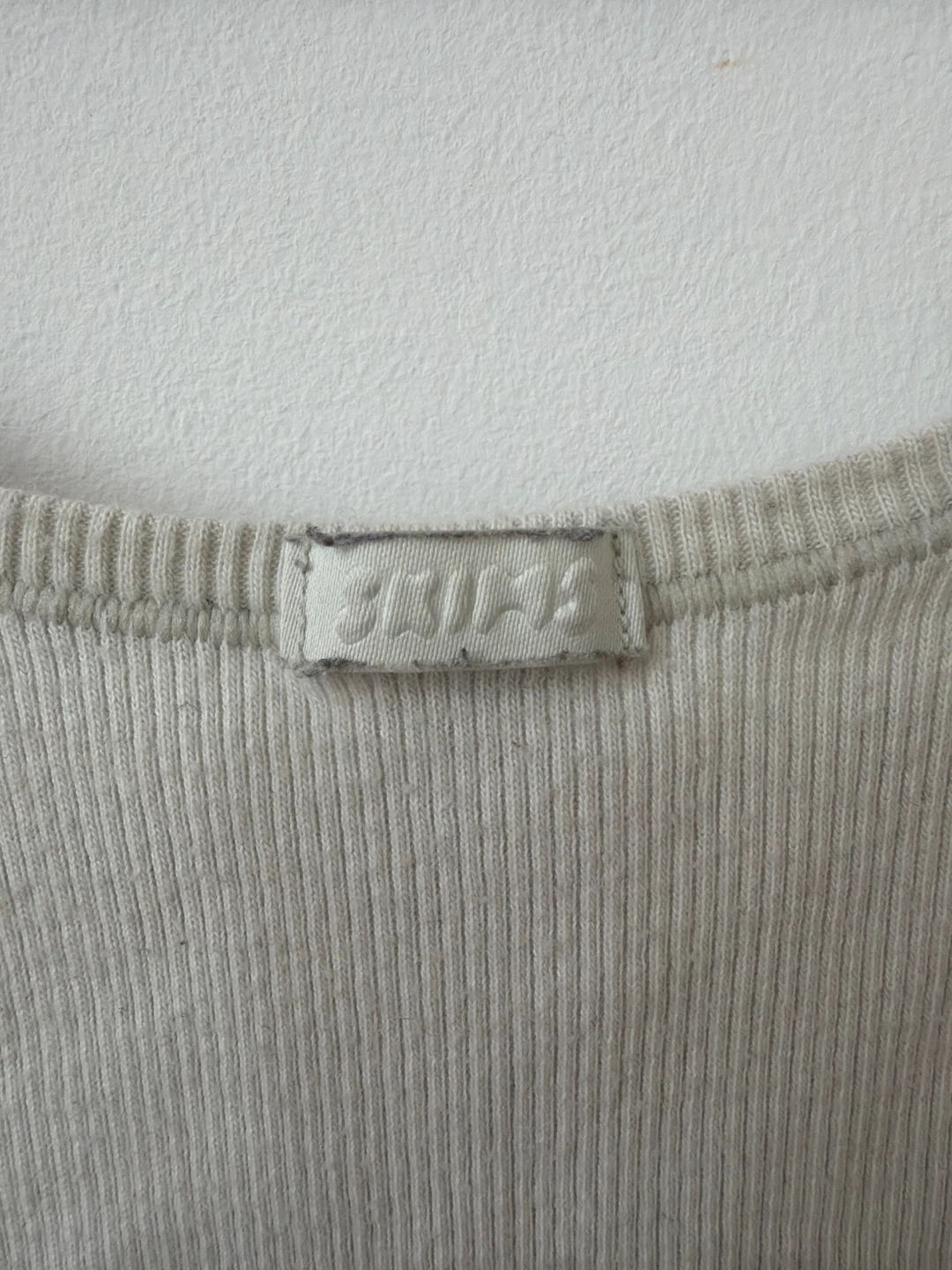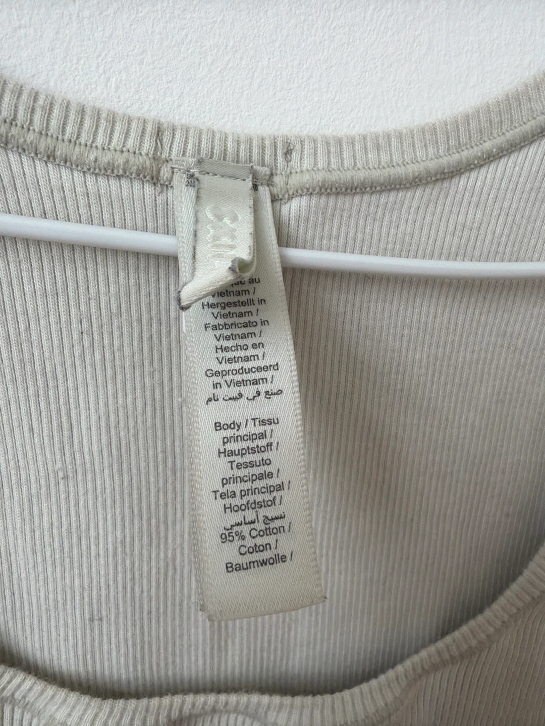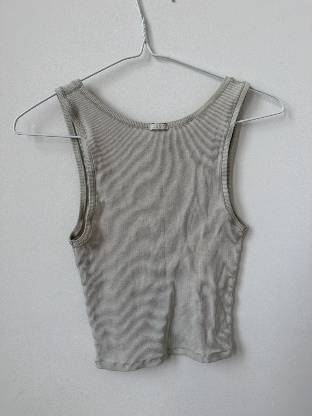 A light grey ribbed tank top. Made with 95% cotton. A classic basic for layering or wear on its own. has been worn maybe twice.