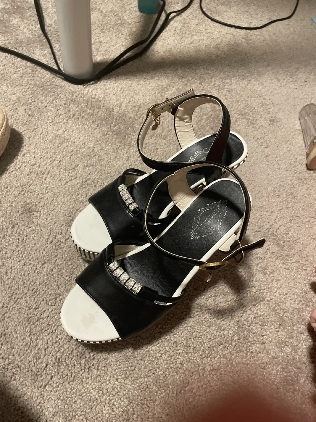 Black and White Wedge Sandals