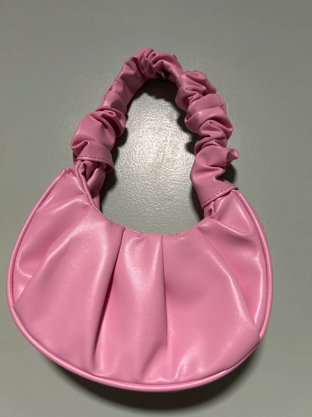 Here's a cute pink ruched handle bag! It's in great condition and ready for a new home. The color is a lovely shade of pink, perfect for adding a pop of color to any outfit