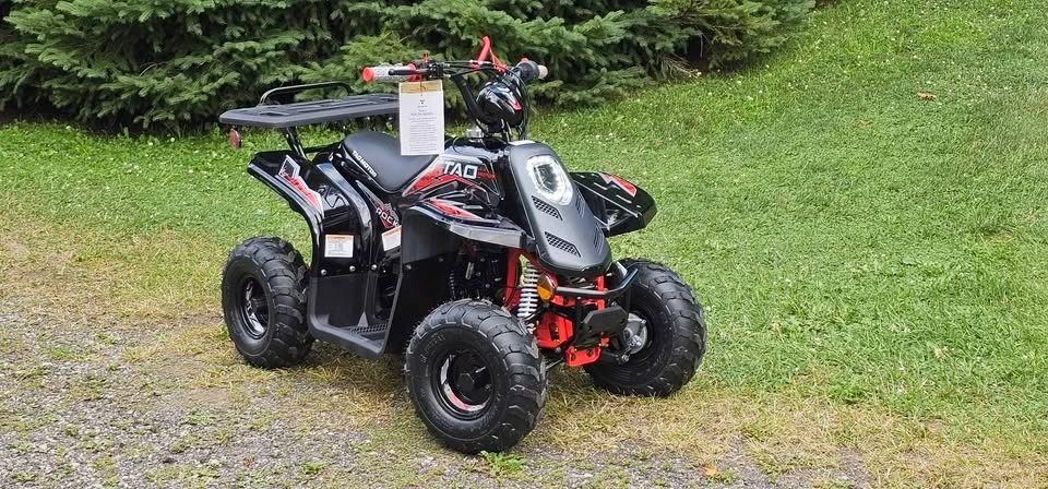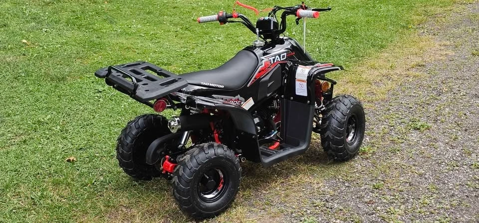 Brand new 2025 110cc ROCK Kids ATVs available! Choose between $1250 in the crate for DIY assembly or $1399 assembled and ready to ride. The assembled ATV comes with a 6-month engine warranty and has High-Performance Wetclutch Oil installed. Features include a 3-mode LED headlight with low & high beam, remote engine stop with alarm, and a speed governor. The in-crate ATV has a 30-day parts warranty only. Available in Green, Red, Black, and Blue.