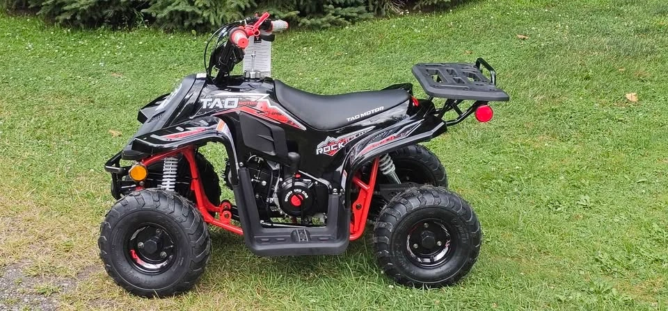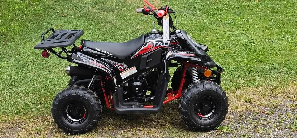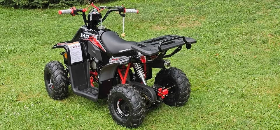 Brand new 2025 110cc ROCK Kids ATVs available! Choose between $1250 in the crate for DIY assembly or $1399 assembled and ready to ride. The assembled ATV comes with a 6-month engine warranty and has High-Performance Wetclutch Oil installed. Features include a 3-mode LED headlight with low & high beam, remote engine stop with alarm, and a speed governor. The in-crate ATV has a 30-day parts warranty only. Available in Green, Red, Black, and Blue.