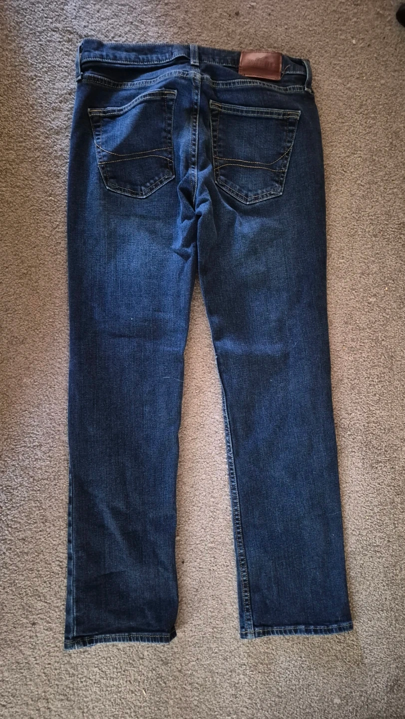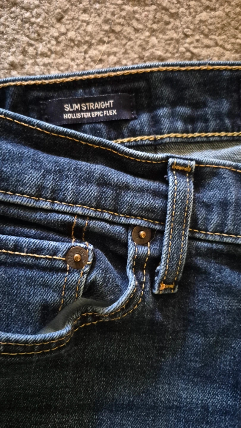 Hollister Slim Straight jeans in a dark wash. Size W30 L30. These jeans are made with Epic Flex for added comfort and stretch. They're a great everyday option for a casual look.