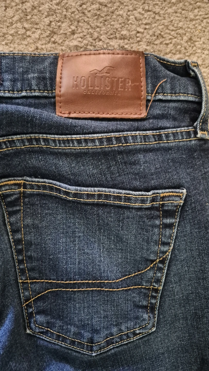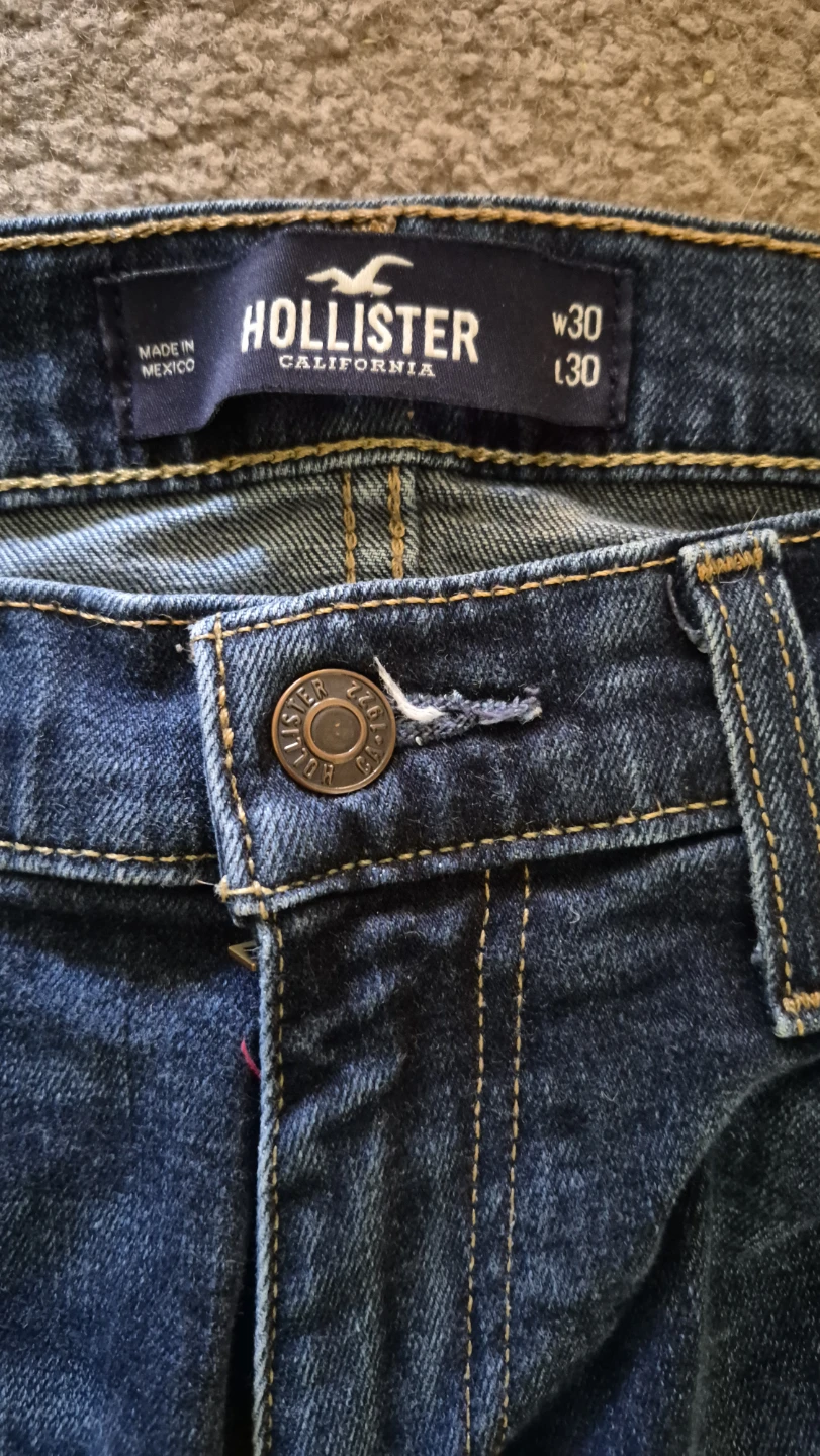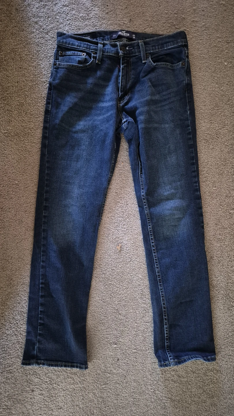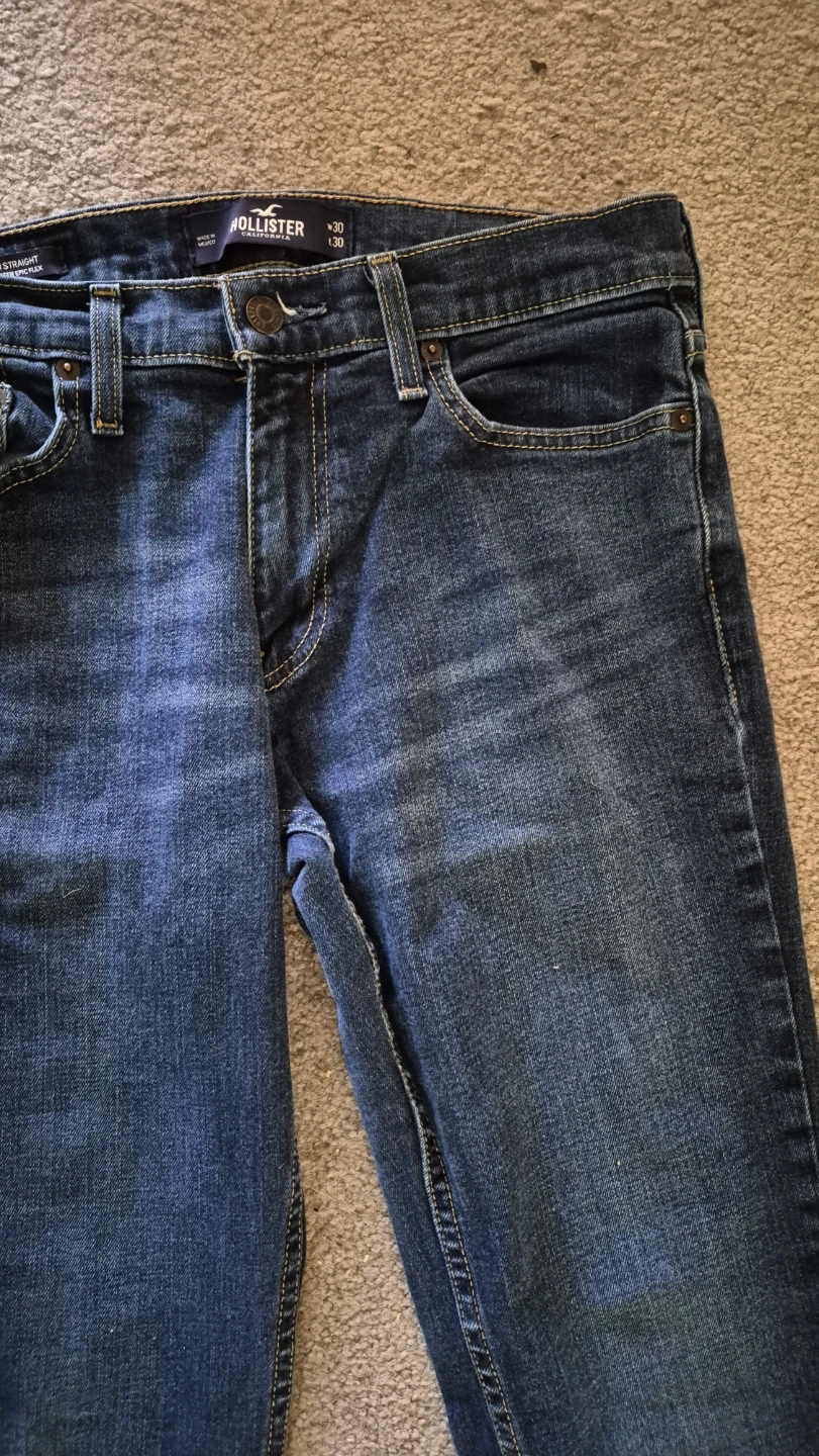 Hollister Slim Straight jeans in a dark wash. Size W30 L30. These jeans are made with Epic Flex for added comfort and stretch. They're a great everyday option for a casual look.