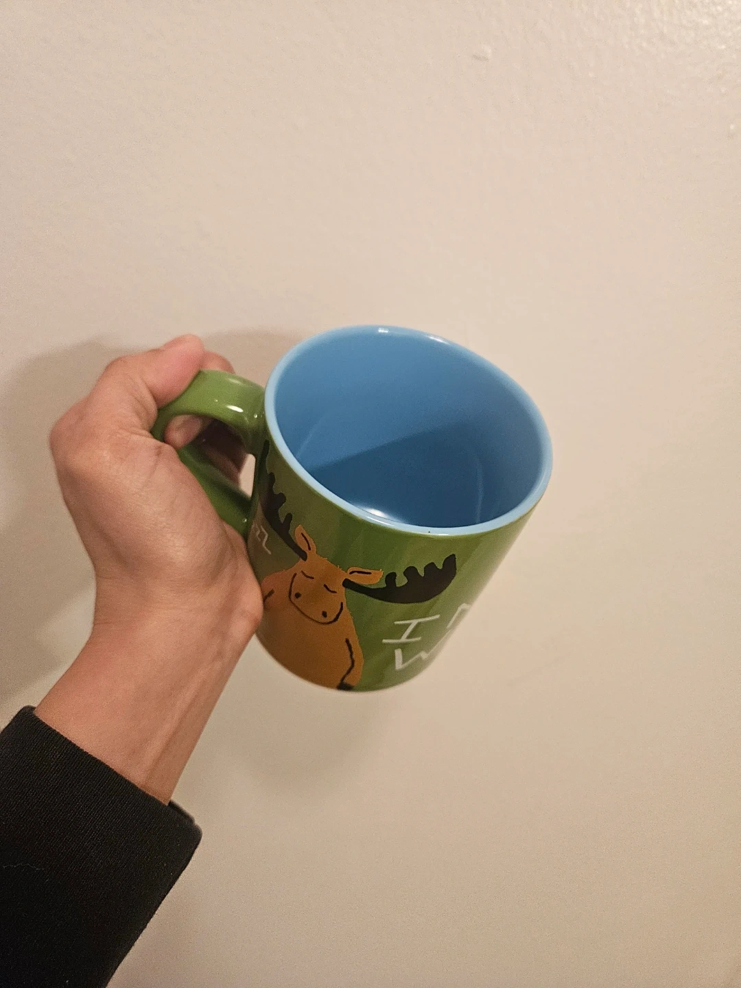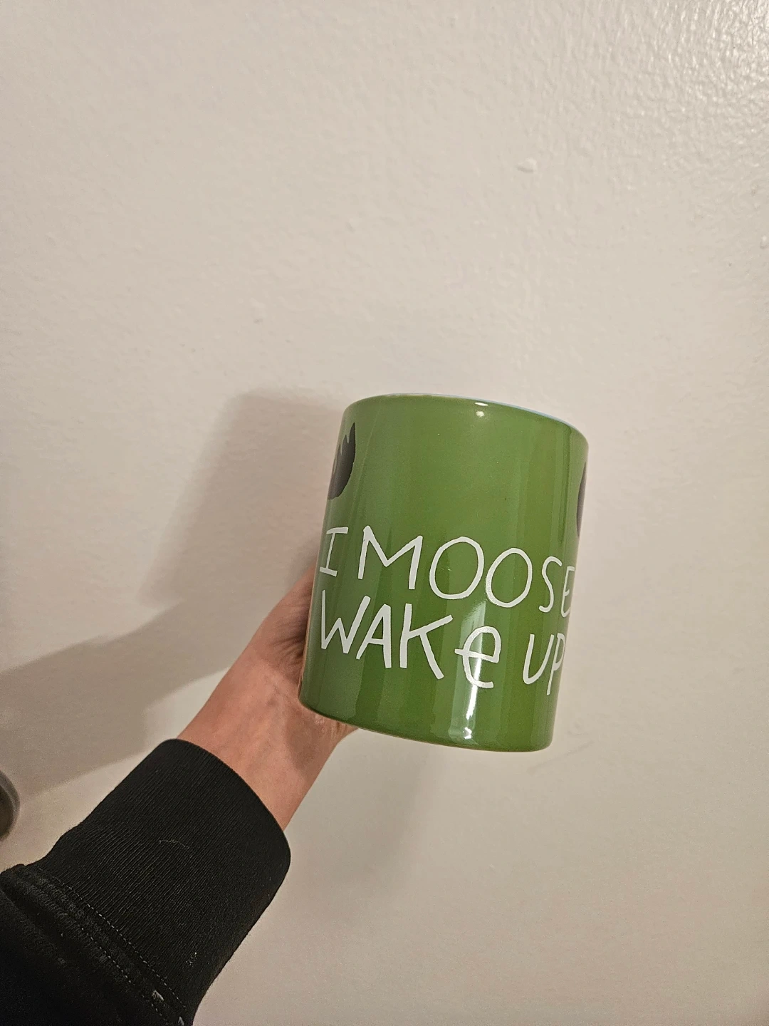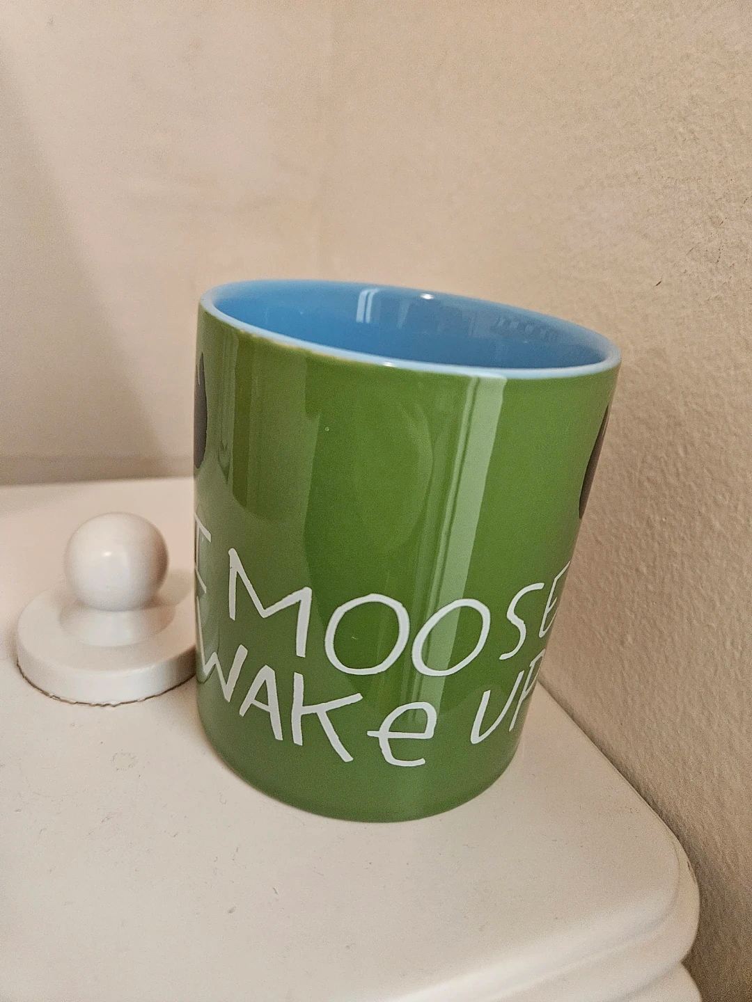 1 / 71 / 7Buy & SellMoose Wake Up MugMoose Wake Up Mug$5Green mug with a sleepy moose graphic and blue interior. Text reads 'Moose Wake Up'. Ceramic material.WHERE TO MEETBriar HillView MapSELLERzianaForest Hill N34553 reviews0 chats·3 favorites·4 viewsSEND CHAT TO SELLERHi ziana! I’m interested in your listing.Hi ziana! I’m interested in your listing.Get the Karrot app to chatSign In to chat