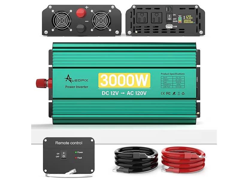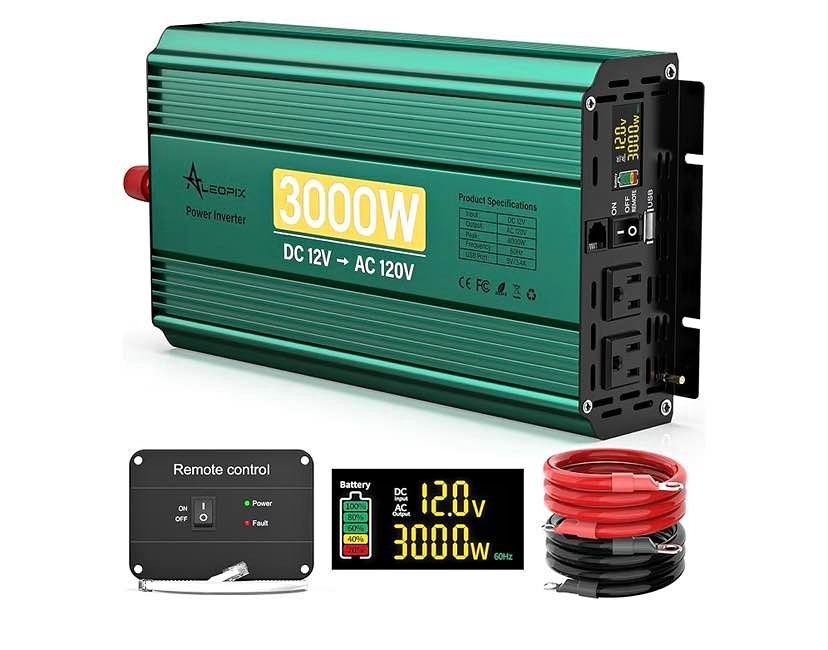 3000 Watt Inverter 12V to 110V/120V, Power Inverters for Vehicles, Car Inverter with Remote LED Display 2 AC Outlet 3.4A USB Port, Converter Inverters for Home RV Truck Solar System by ALEOPIX