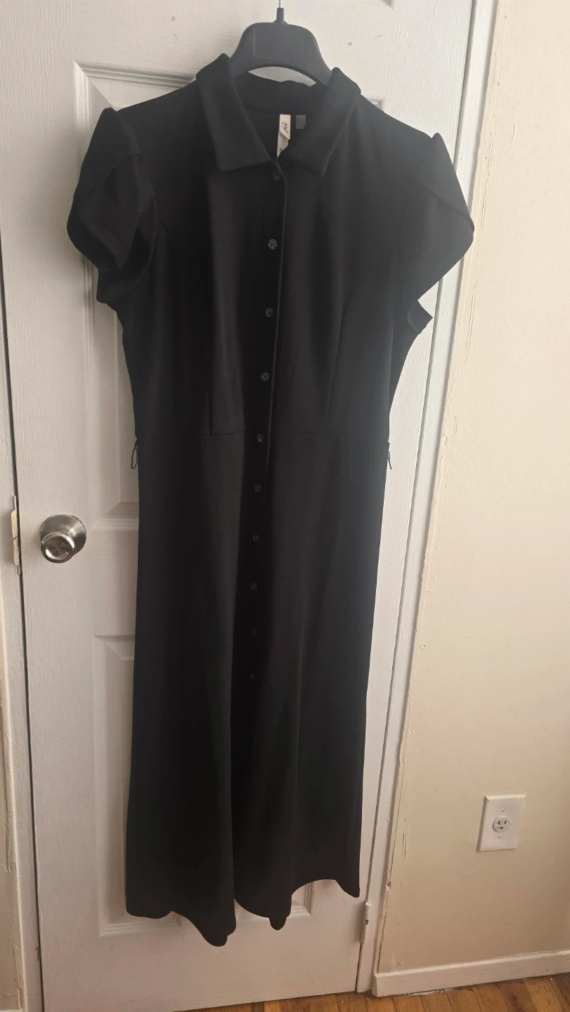 Here's a classic black dress with button-down detailing! It's a versatile piece that can be dressed up or down, perfect for any occasion. The material is comfortable and easy to care for.