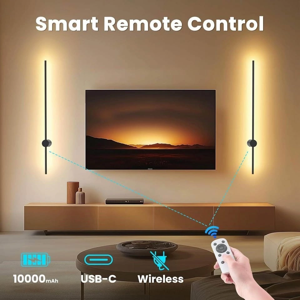 Sleek, modern design, these wall sconces set of two battery operated are perfect for renters or anyone avoiding wiring. Install them in minutes anywhere you need light bedside, hallways, or reading corners and enjoy their effortless style that fits any decor. This sconces wall decor set of 2 features a built-in 10,000mAh rechargeable battery, providing 10 to 50 hours of runtime on a single charge. It offers 7 vibrant colors and 3 adjustable color temperatures (2700K, 4000K, 5000K) to suit any setting. Additionally, the 5-level dimming function lets you easily adjust the brightness to create the perfect ambiance. This rechargeable wall sconce comes with a remote for easy control of on/off, brightness, and color temperature. Its memory function retains your last color and brightness settings. It also features 1H and 8H timer options for added convenience. Made from high-quality aluminum with a sleek matte black finish, ensuring durability. Its modern design complements various interior styles and is perfect for living rooms, bedrooms, corridors, and more, adding both functionality and elegance to any space.