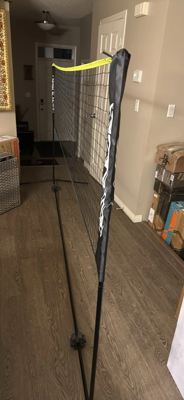 Get ready for some backyard fun with this Boulder badminton net, perfect for badminton, tennis, pickleball, and kids' volleyball! This portable net is super easy to set up and take down, making it ideal for spontaneous games anytime, anywhere. It's in excellent condition and ready for a new home. Adjustable height for different sports. Includes a carry bag for easy transport and storage. Priced at $60. If the ad is still up, it's still available!