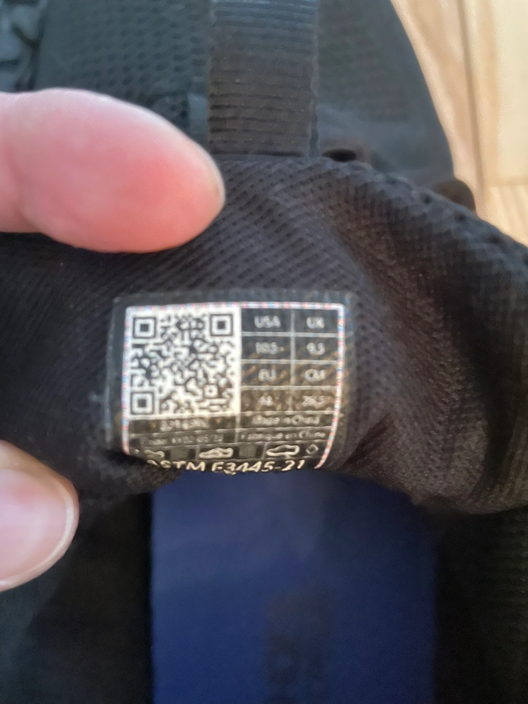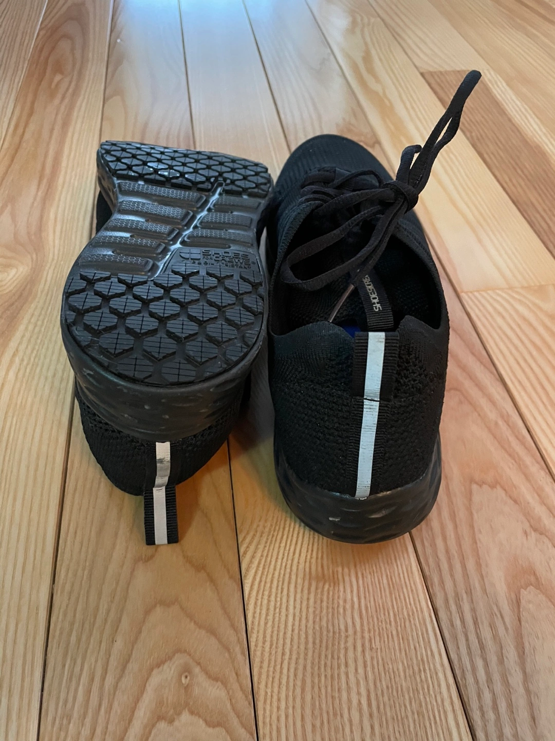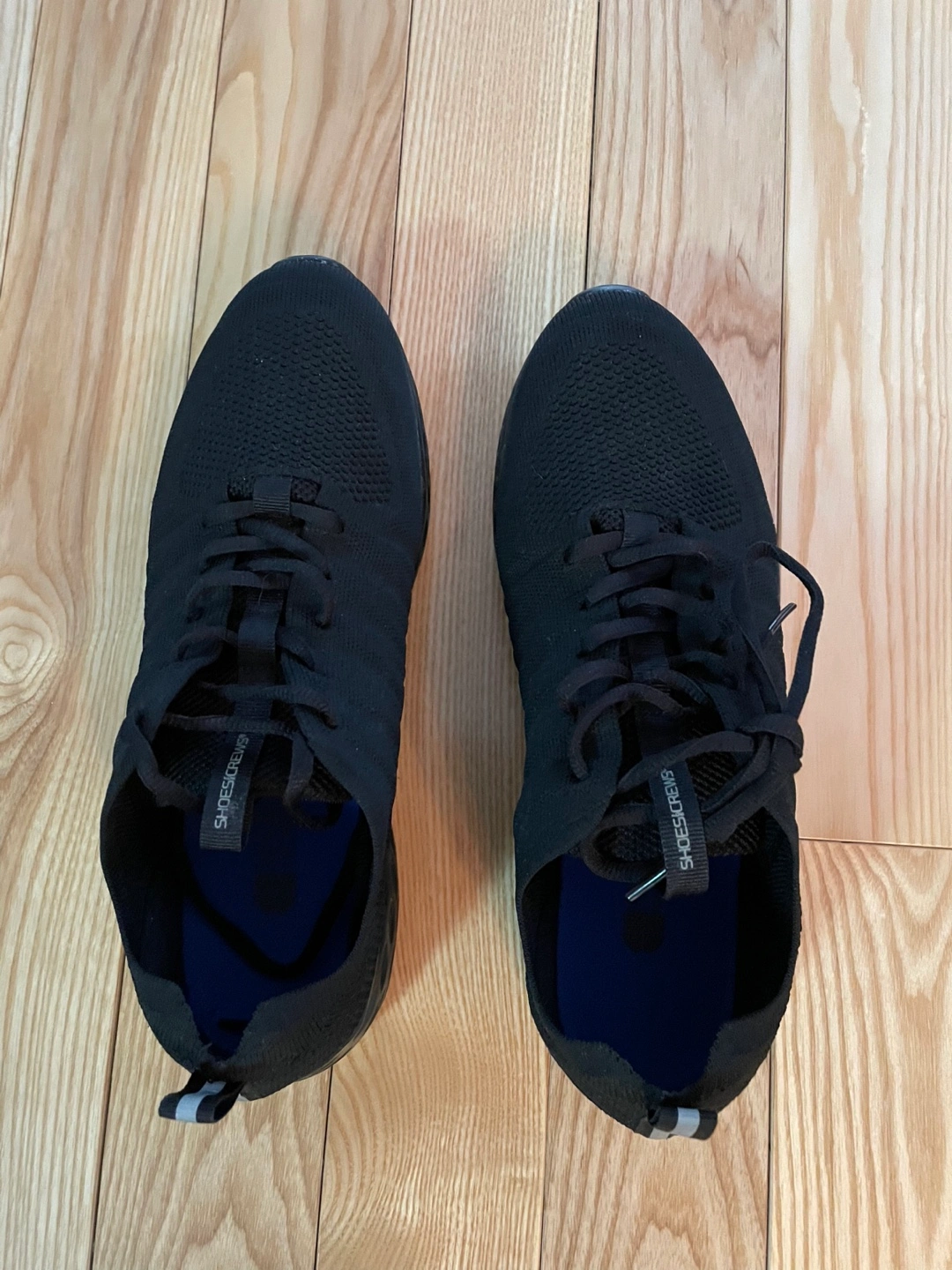 Black athletic shoes. Size is 10.5 US. Breathable mesh upper and rubber sole. New condition.