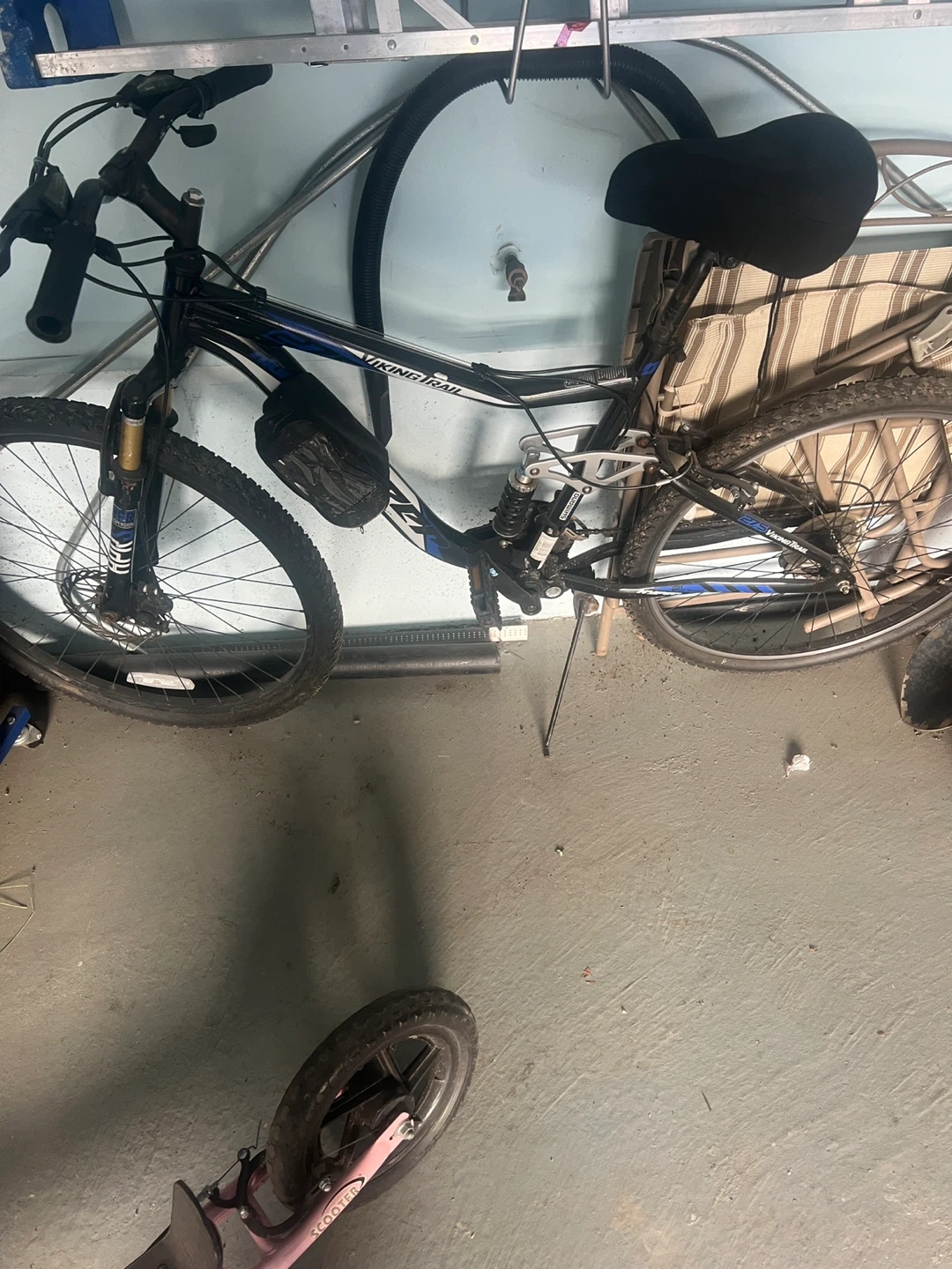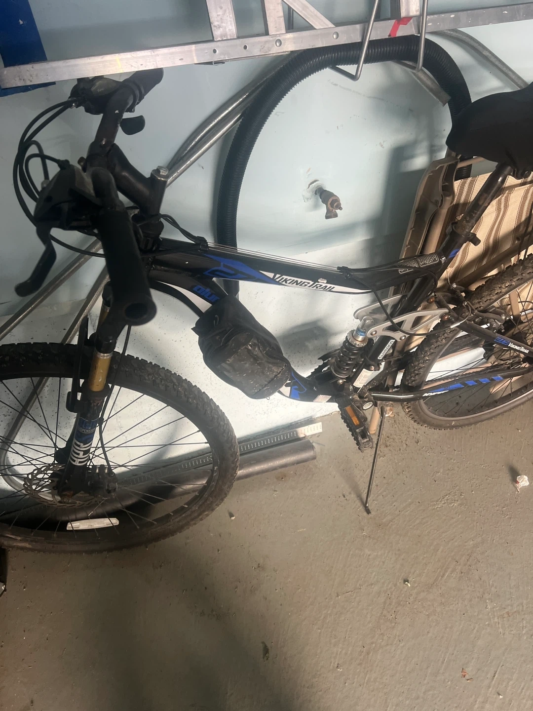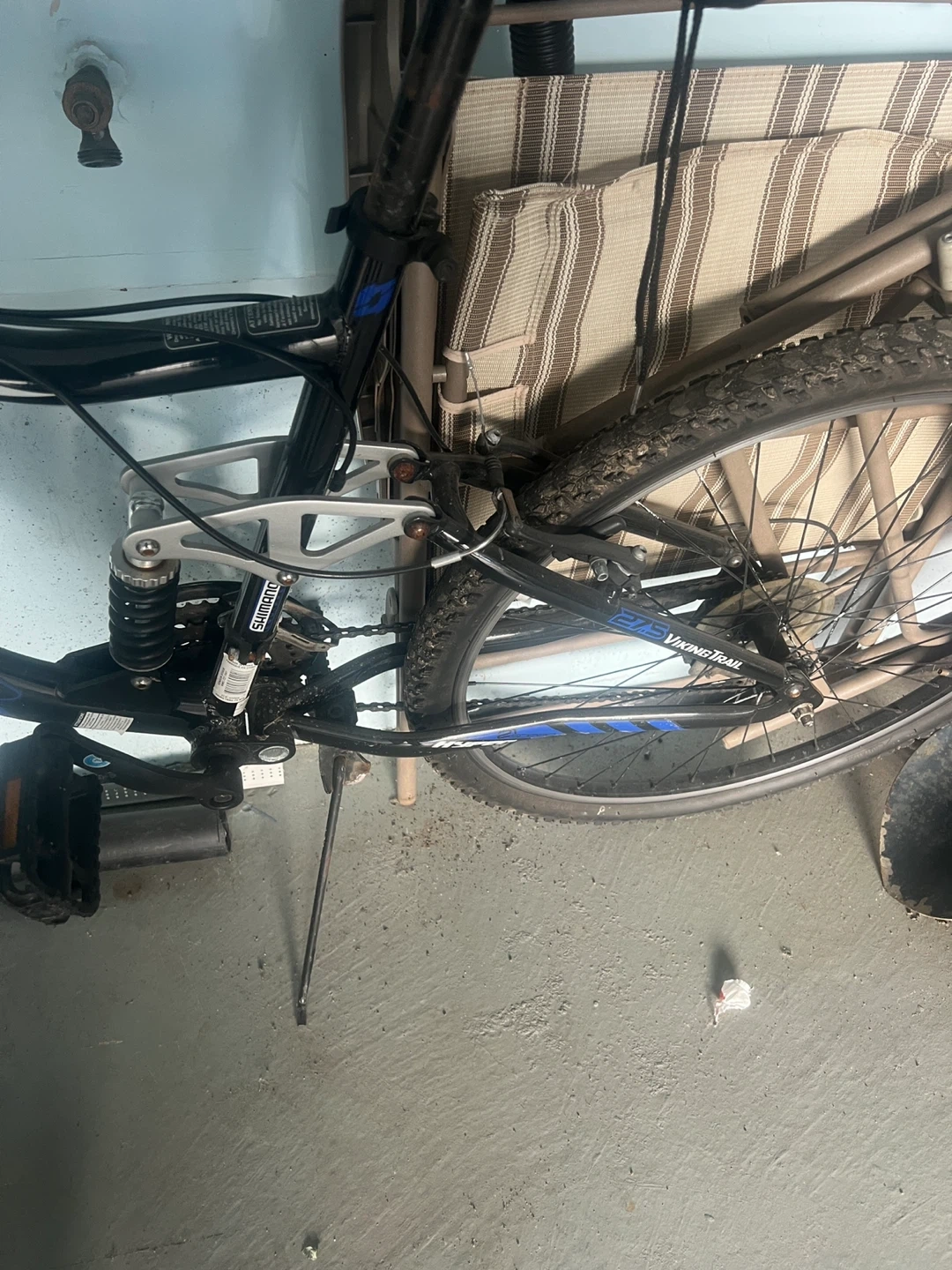 Buy & SellViking Trail Mountain BikeViking Trail Mountain Bike$130This is a Viking Trail mountain bike. It's a full-suspension bike with disc brakes. It has a black frame with blue accents. Asking 130 oboWHERE TO MEETCheck LocationView MapSELLERverifiedMiguelWoodbridge1497 reviews0 chats·0 favorites·6 viewsSEND CHAT TO SELLERHi Miguel! I’m interested in your listing.Hi Miguel! I’m interested in your listing.Get the Karrot app to chatSign In to chat