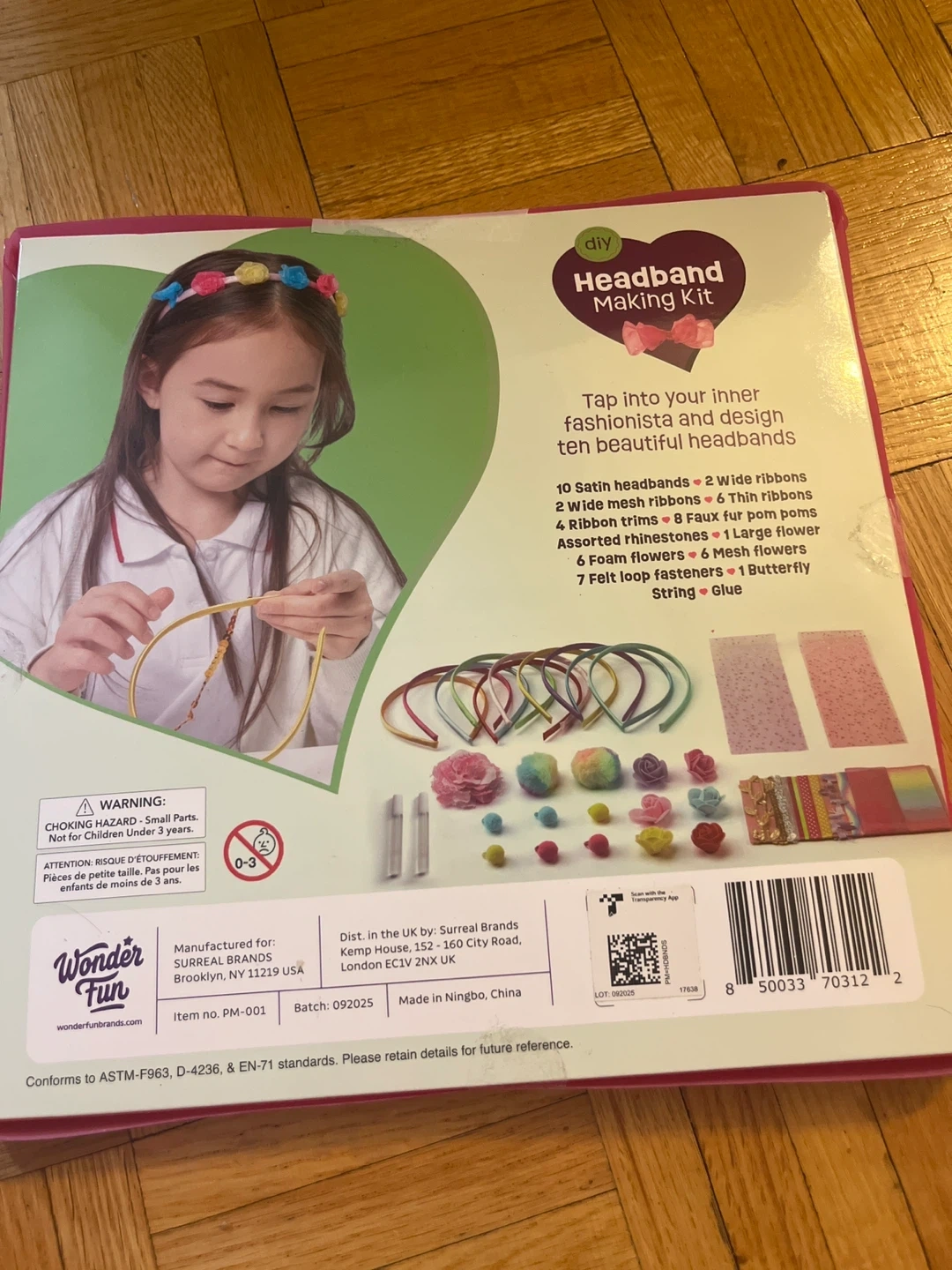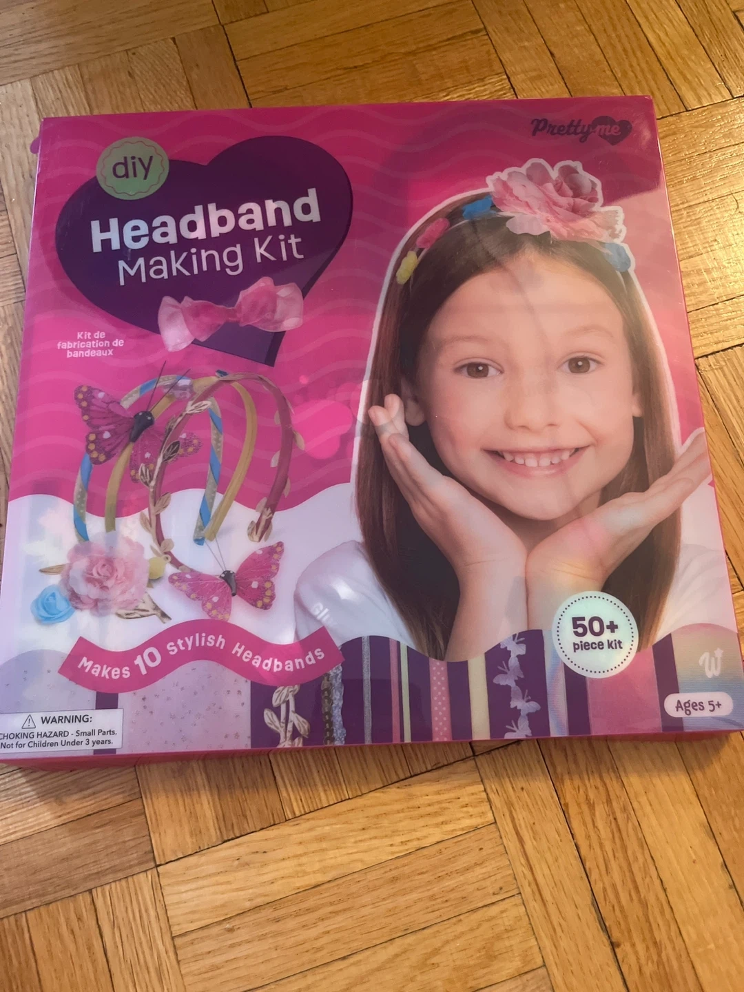 This kit lets you make 10 stylish headbands. It includes satin headbands, wide ribbons, thin ribbons, ribbon trims, faux fur pom poms, assorted rhinestones, flowers, felt loop fasteners, butterfly string, and glue. Ages 5+ and over 50 pieces!