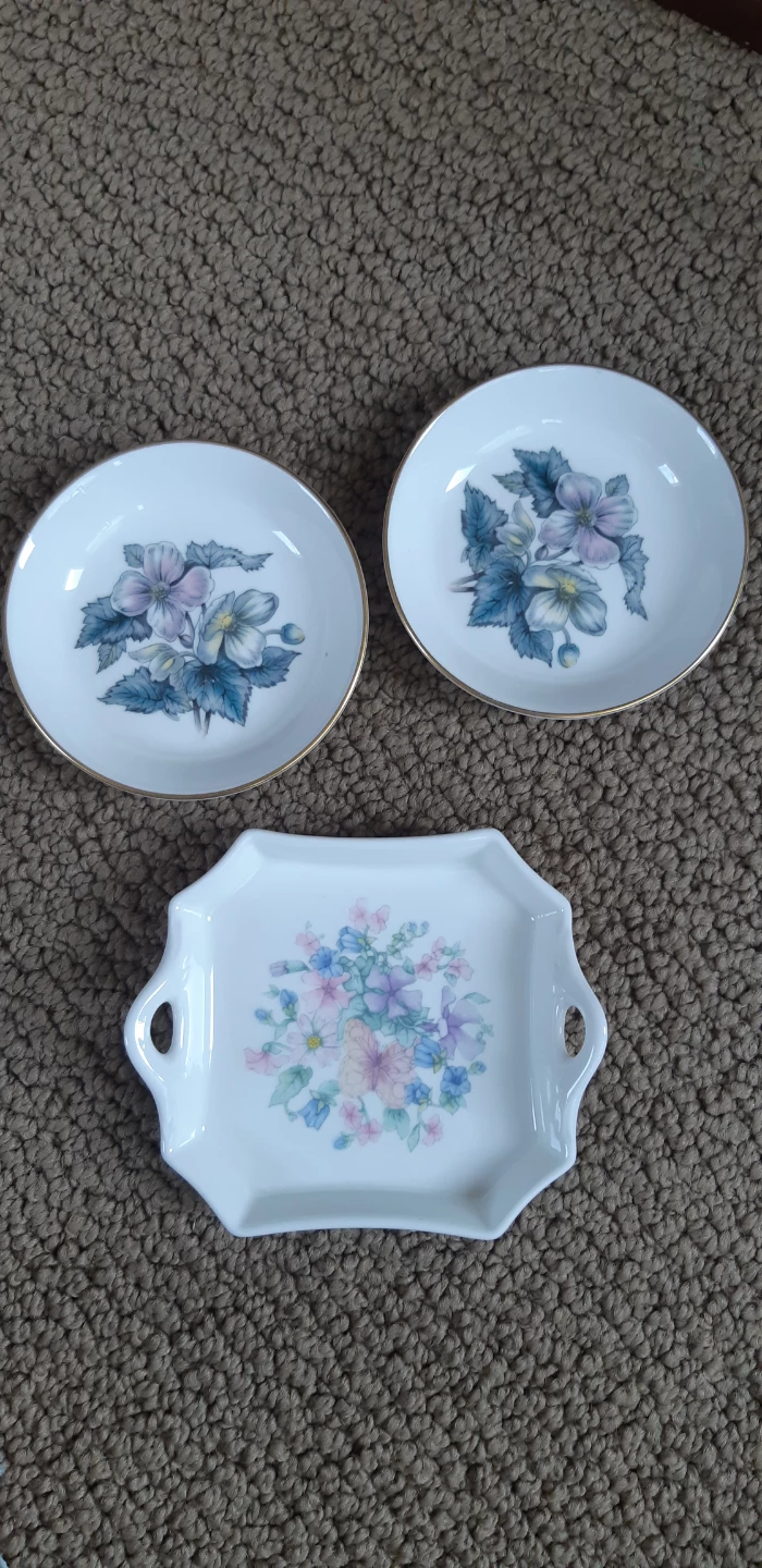 3 lovely trinket dishes made of fine bone china... two Royal Worcester and one Wedgwood. They feature beautiful floral designs and are in great condition. Perfect for adding a touch of elegance to your home!