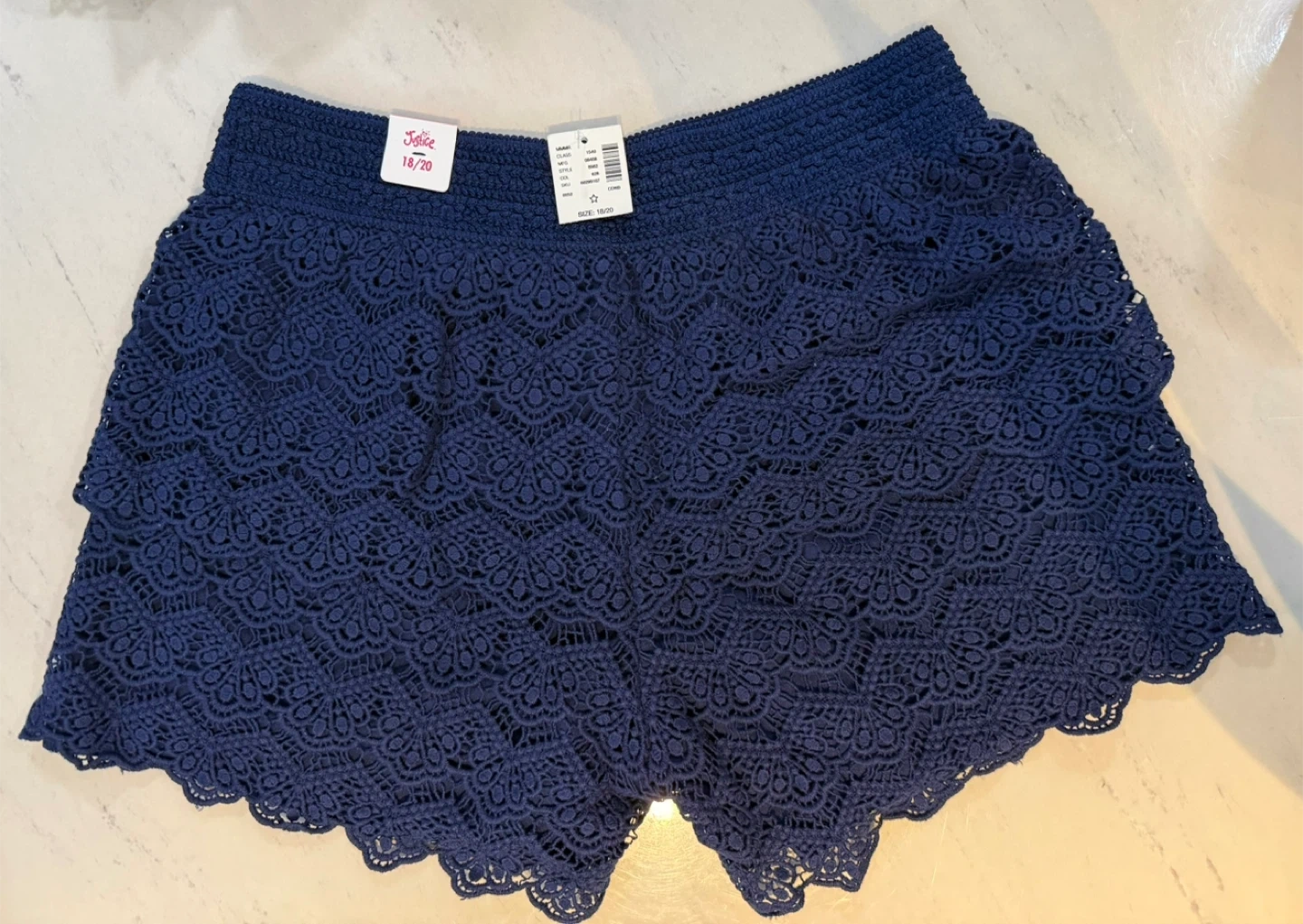 NEW Justice Girls Navy Blue Crochet Shorts Size 18/20