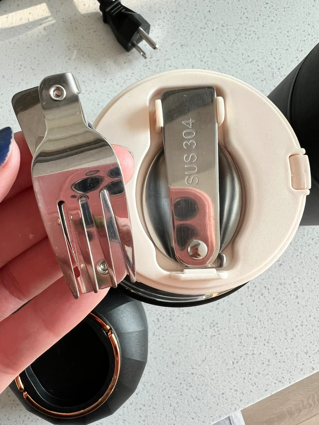 • Design: Sleek black finish with copper/rose gold details.