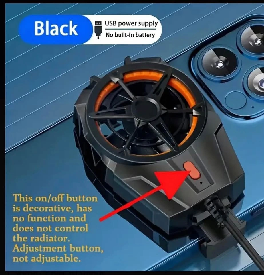 Brand new cooling fan for mobile phones. Rechargeable battery with large capacity and long life. Silent operation with three speed settings. Ideal for phone gaming. Weighs only 47g and has a small size that won't block your screen.
