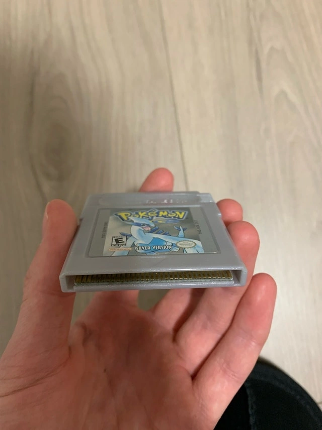 Pokémon Silver for the GameBoy. System is not included, it is just being used to show that the game cartridge works.
