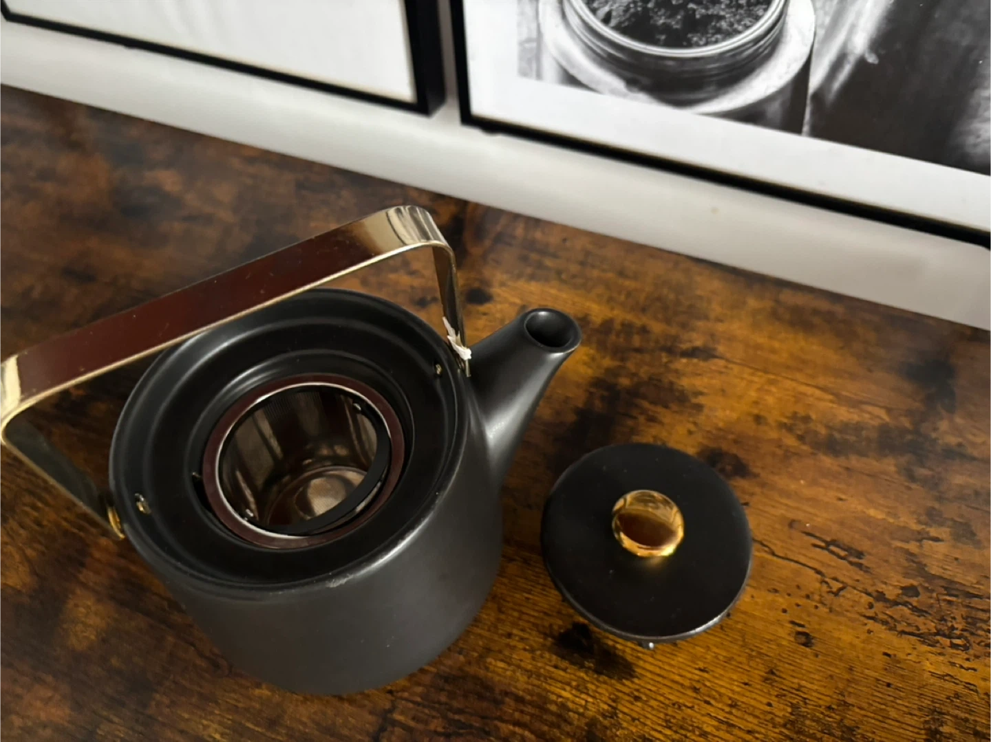 Black Ceramic Teapot with Infuser and Gold Handle