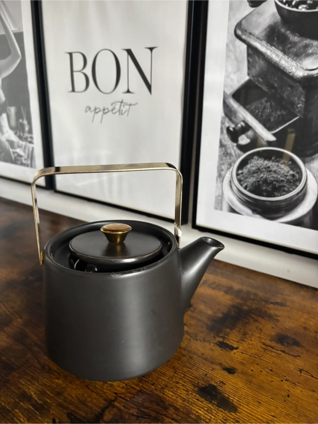 Black Ceramic Teapot with Infuser and Gold Handle
