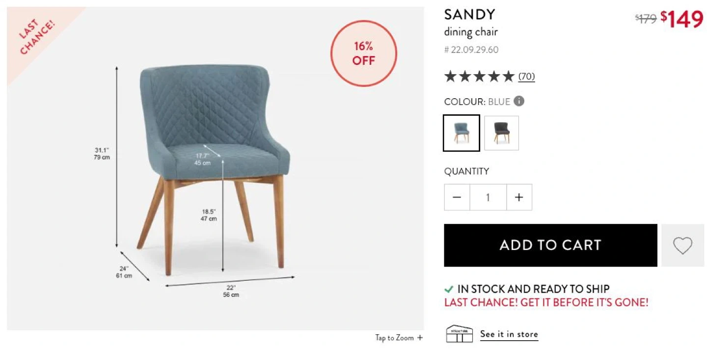 $300 4 chairs ( Structube listing price $149 each )