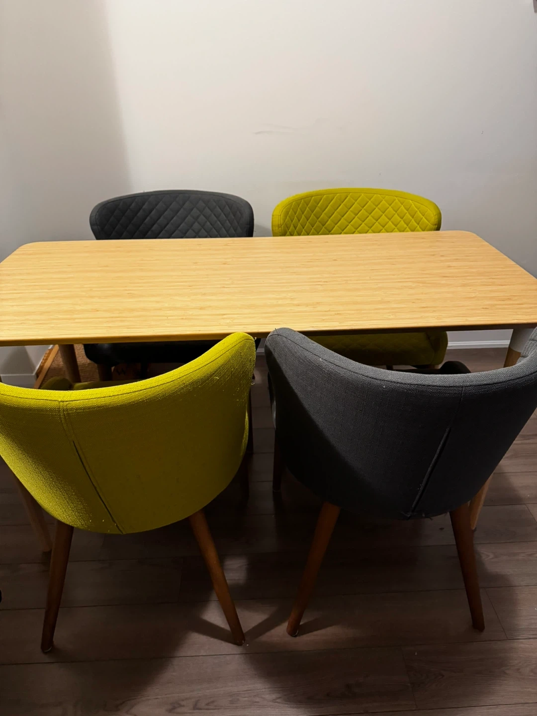 $400 full set ( table + 4 chairs two grey two lime )