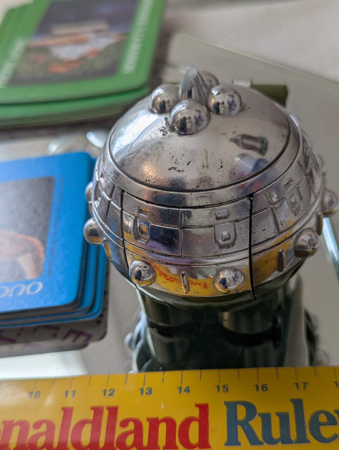 Selling an E.T. The Extra-Terrestrial card game and toy. The toy is a spaceship with a small E.T. figure inside from 1982. The card game includes instructions.