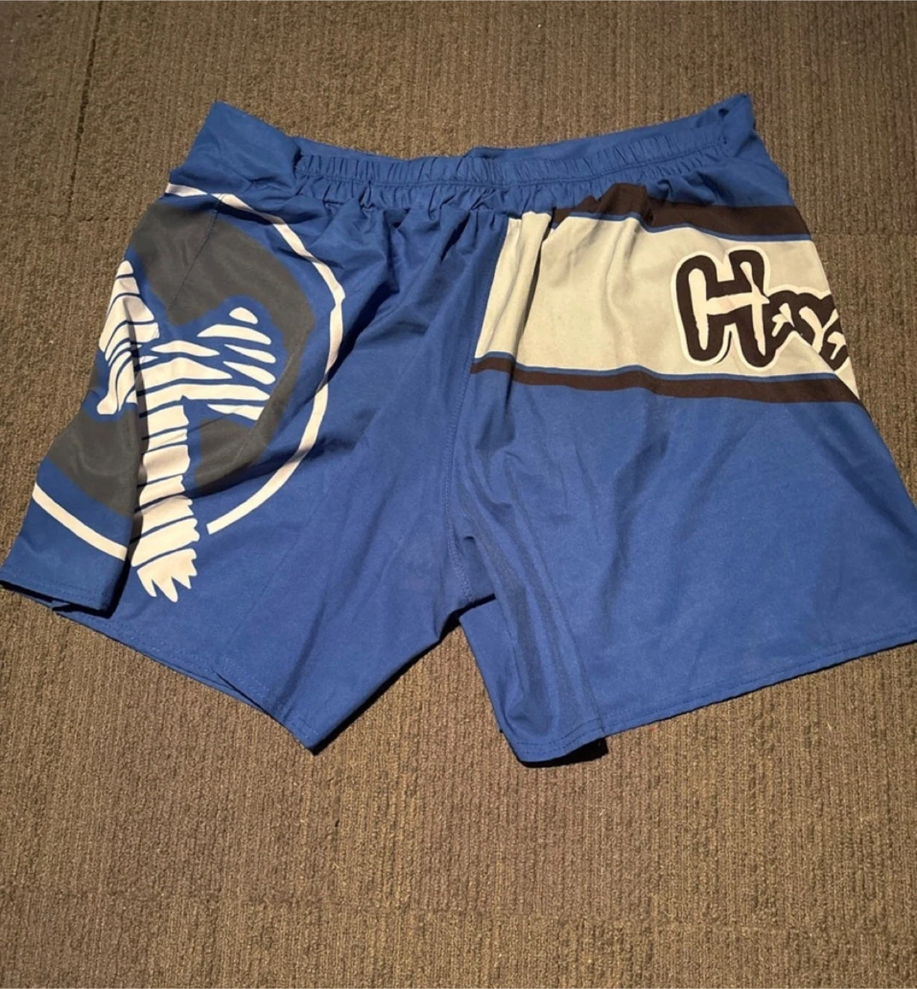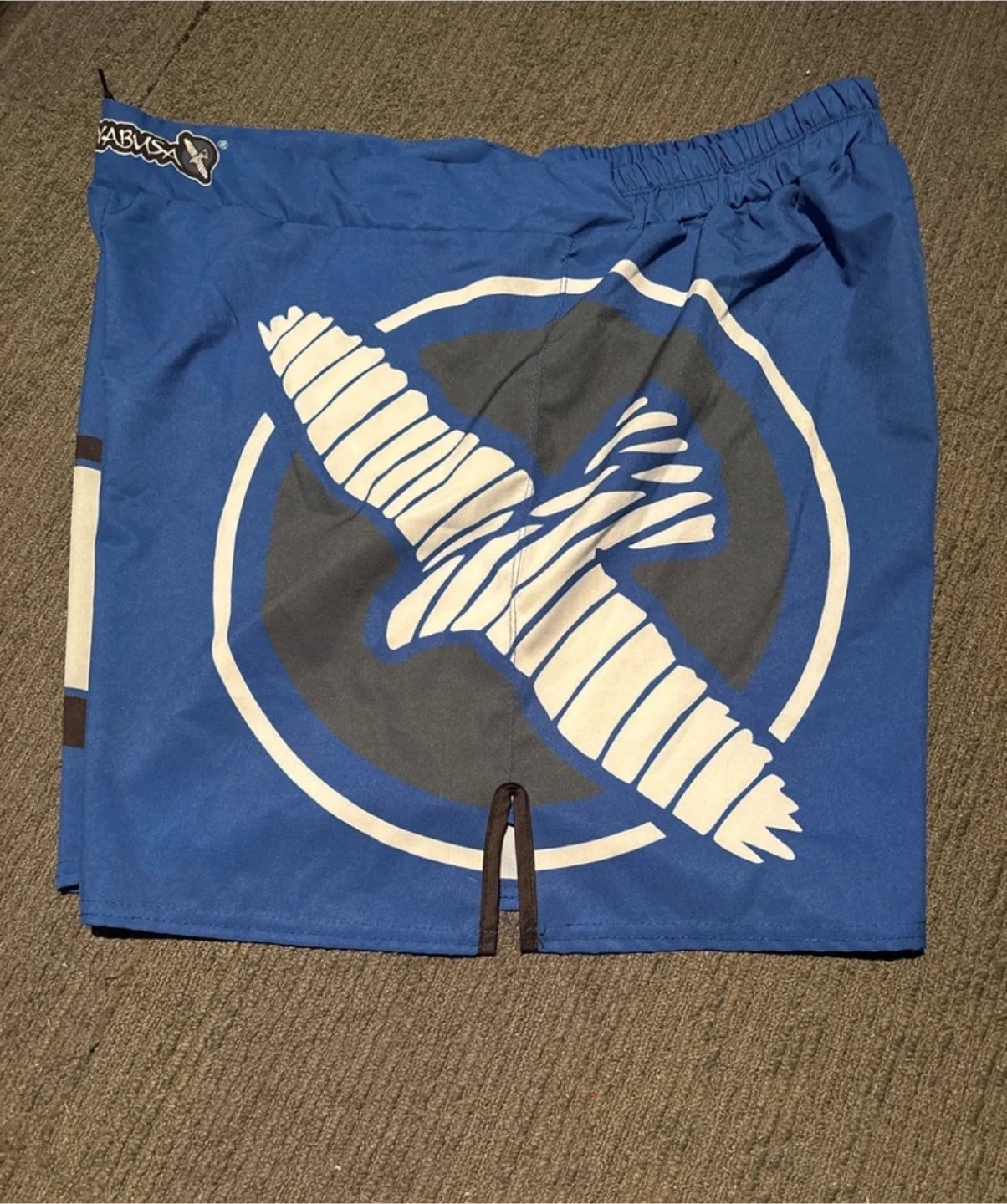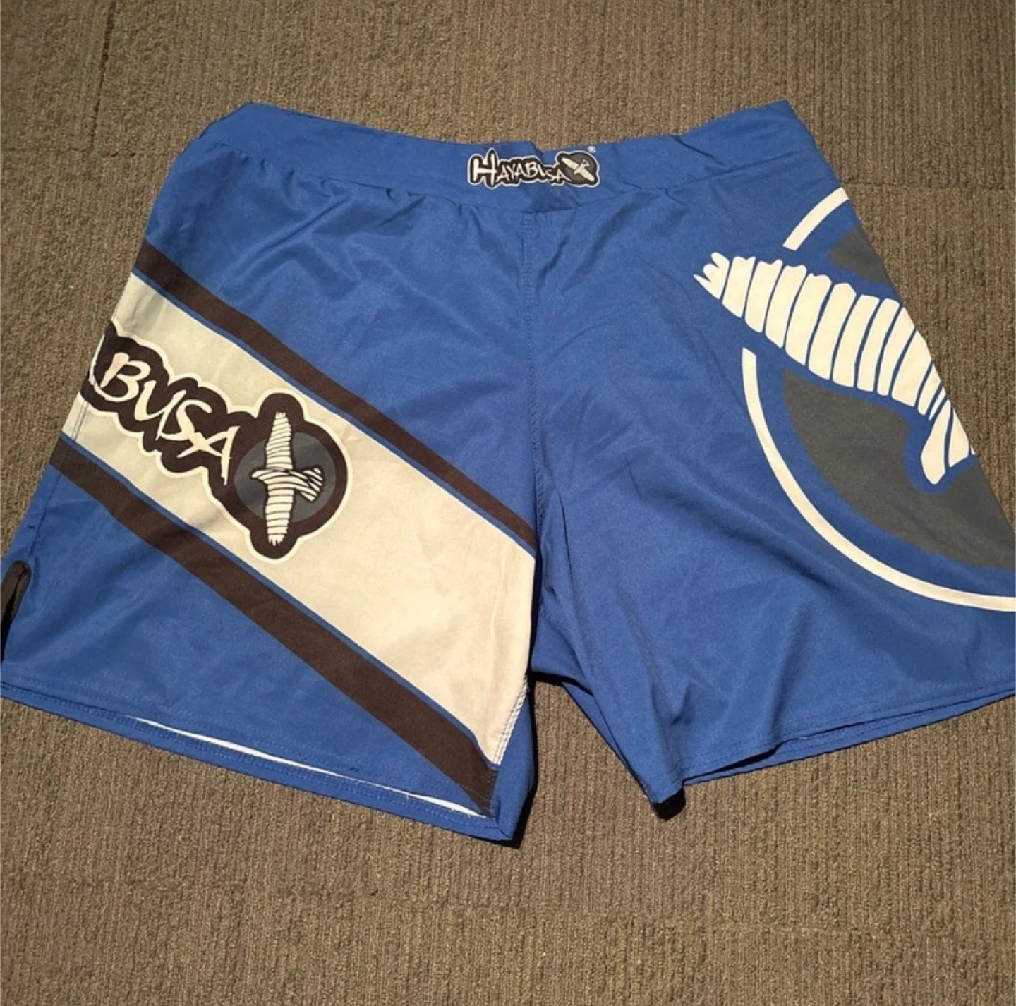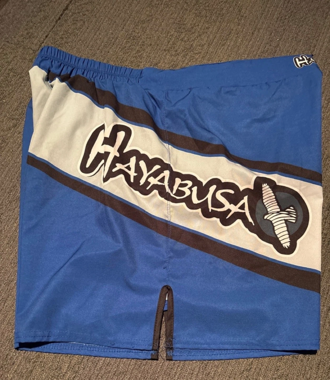 I'm selling a pair of used Hayabusa fight shorts, size XXL fits like XL. featuring a striking blue design with the Hayabusa logo. These shorts are made from durable, flexible material, perfect for MMA, kickboxing, or grappling.