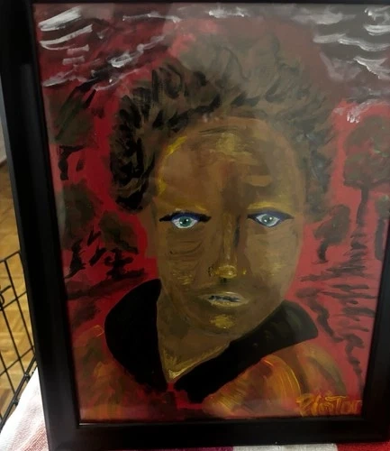 Original 2018 abstract painting on canvas by Pintor. Features street art with a vibrant portrait. Acrylic painting technique. This one-of-a-kind artwork is framed and ready to add a touch of creativity to any space. Ideal for art collectors or those looking to enhance their home or office with a distinctive and eye-catching piece.