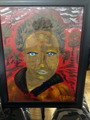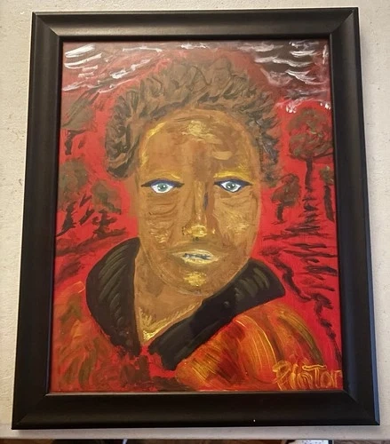 Original 2018 abstract painting on canvas by Pintor. Features street art with a vibrant portrait. Acrylic painting technique. This one-of-a-kind artwork is framed and ready to add a touch of creativity to any space. Ideal for art collectors or those looking to enhance their home or office with a distinctive and eye-catching piece.