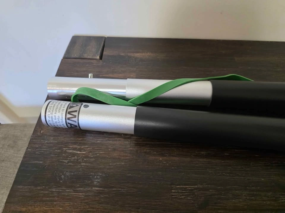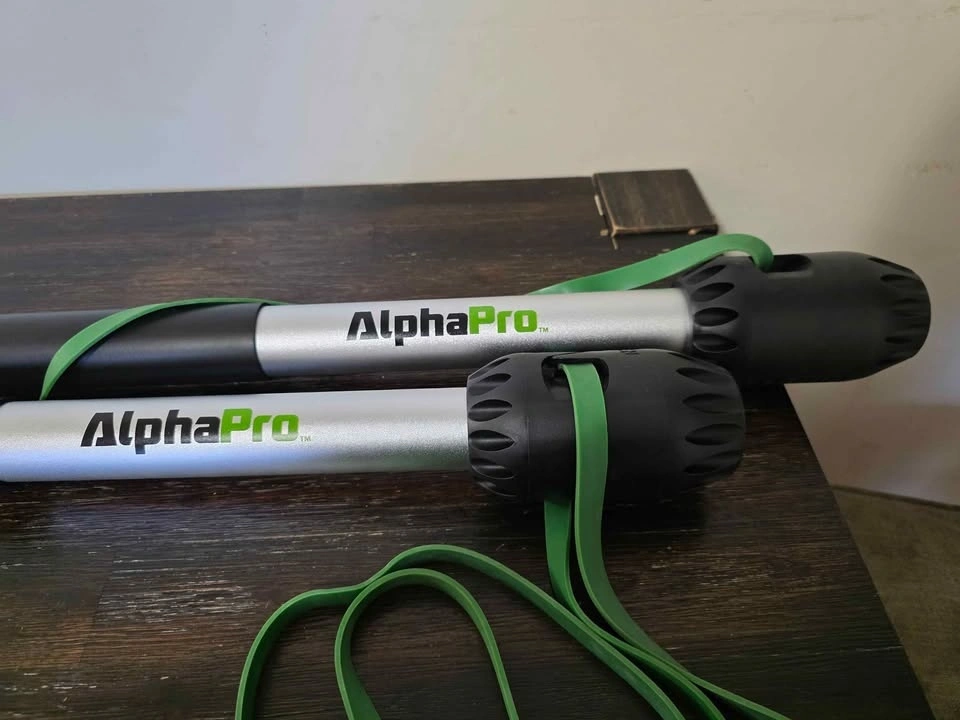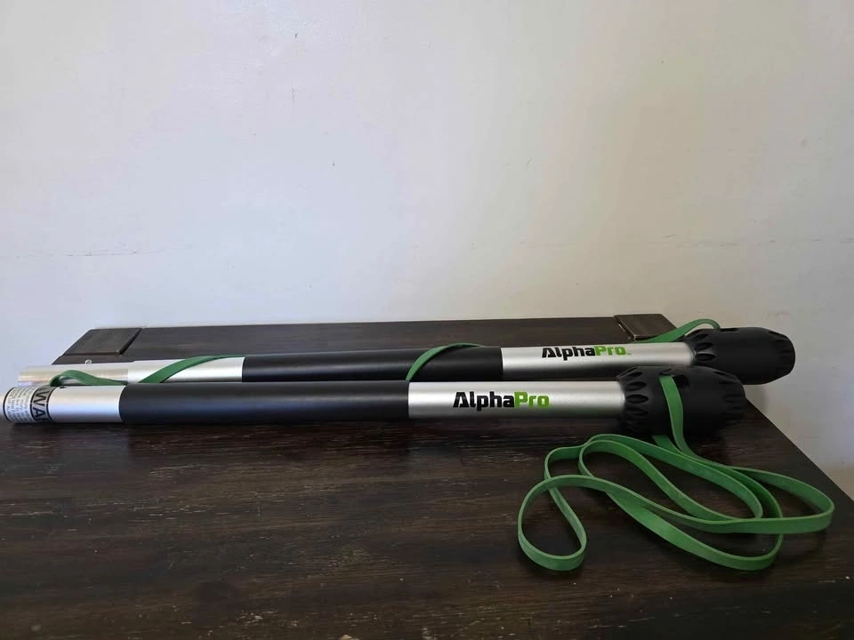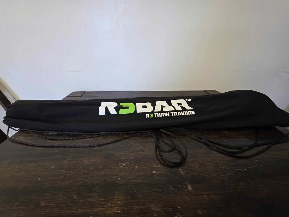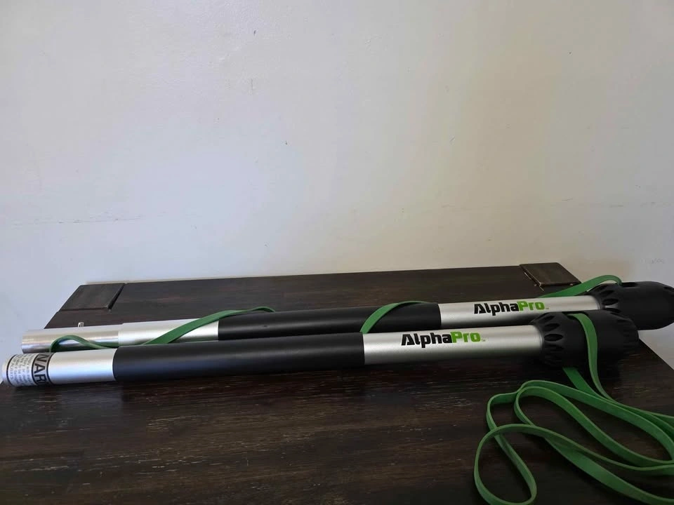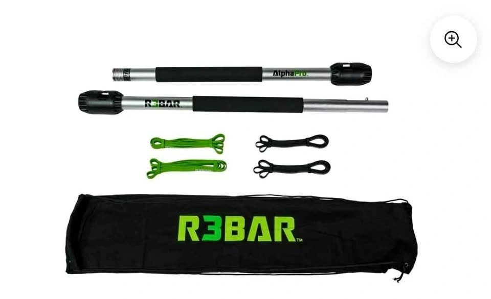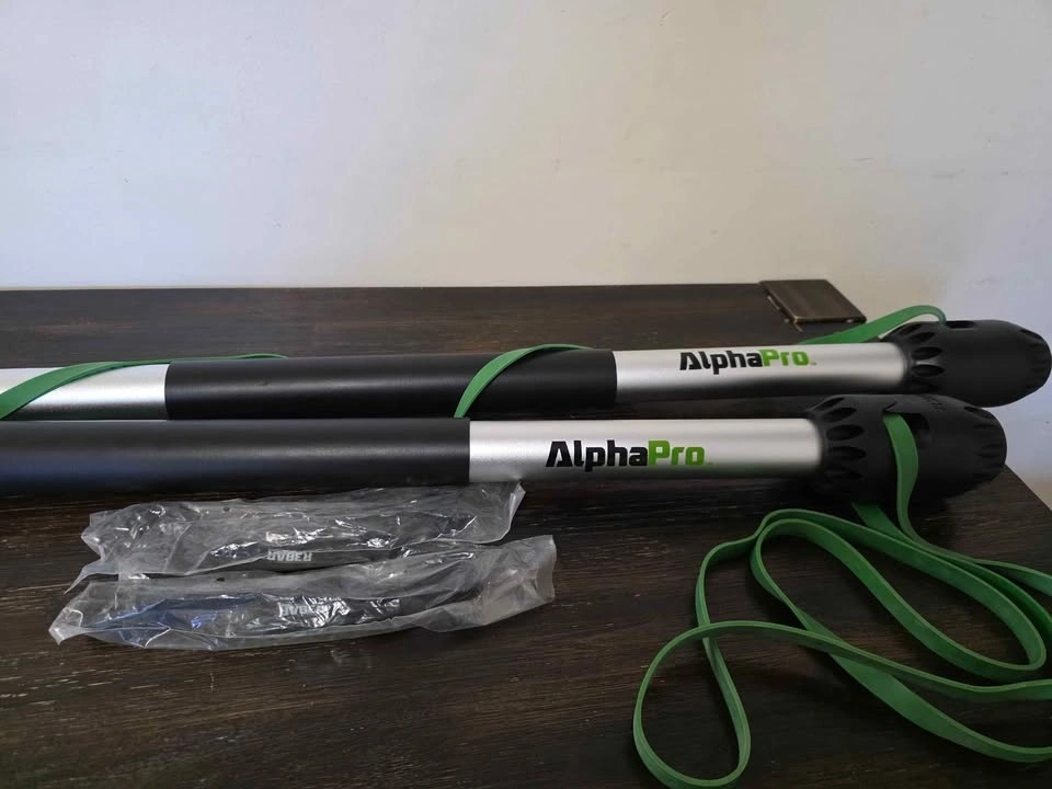 This is a portable, sturdy, and durable two-piece aluminum alloy device, weighing 2.7 kg (6 lb). It connects securely at the center to form a uniform training tool. Each piece features soft, non-slip, and durable foam grips. Rubber caps are specially designed to install and/or uninstall resistance bands of varying strengths within firmly integrated rubber slots. Let me know if you're interested!