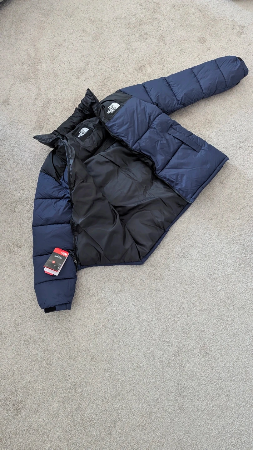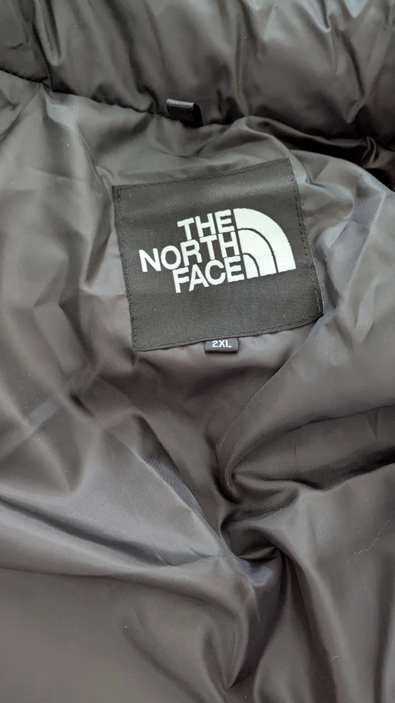 Navy blue puffer jacket from The North Face. It's a size 2XL. Great for cold weather adventures!