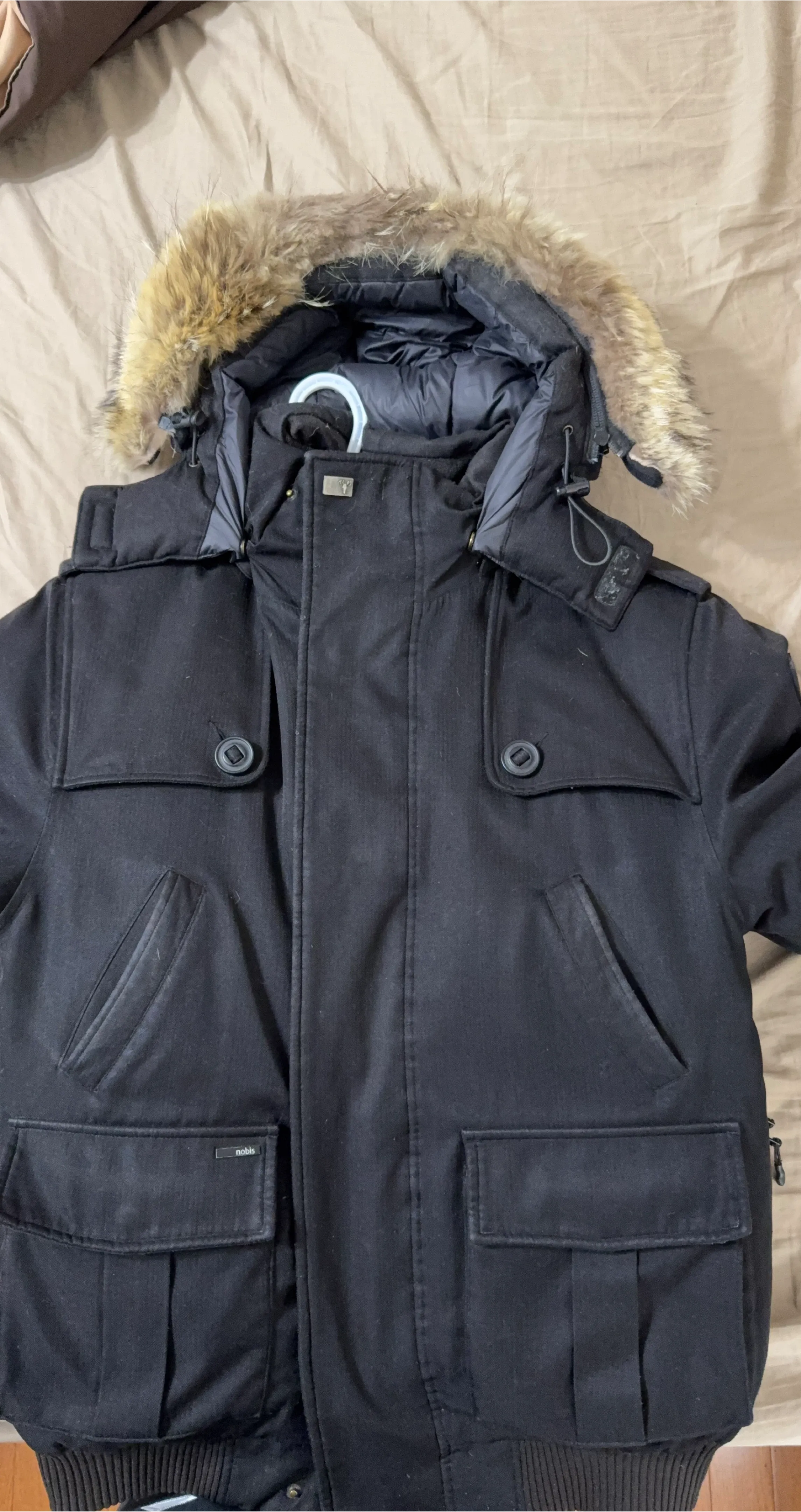 Selling a black Nobis winter jacket with a fur hood. It's in great condition and ready to keep you warm this winter!
