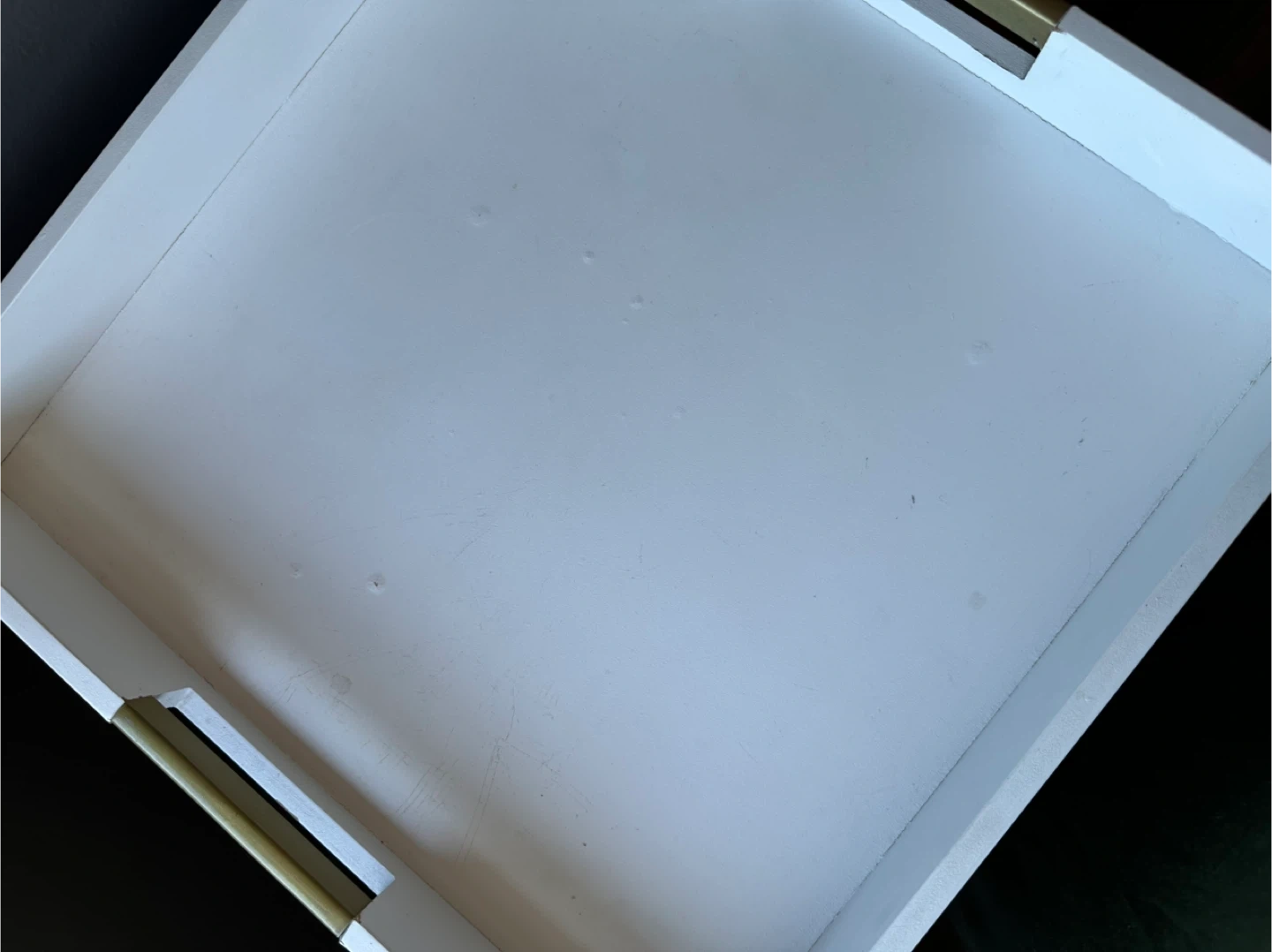 Purchased at Target, Threshold. Gold and white in color. Has a detachable tray at the top. Has slight normal wear on the tray. Measures 18” X 18” and 30 1/2” tall. It’s on wheels, portable.