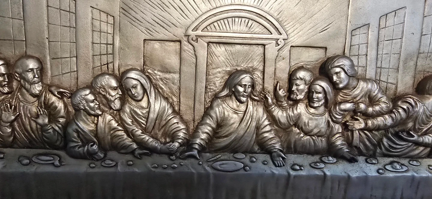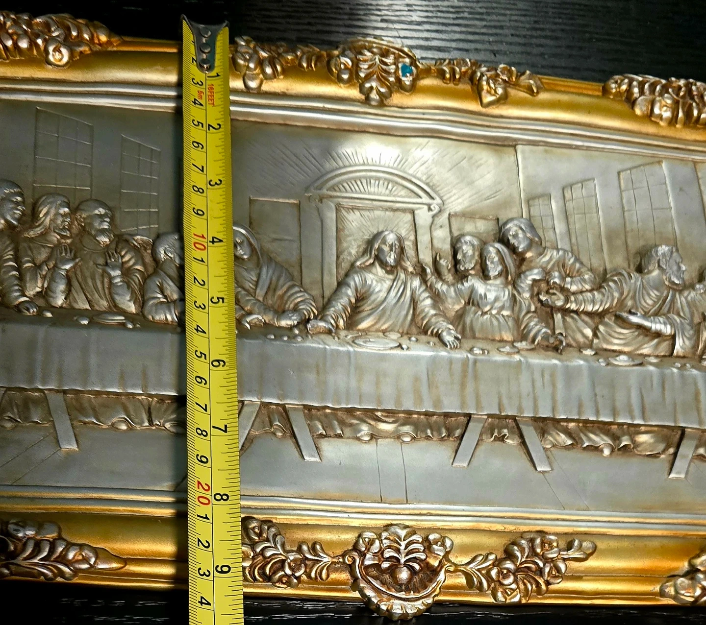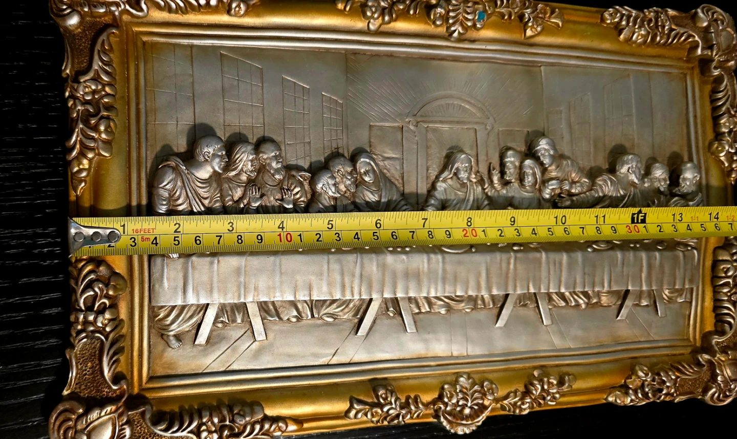 š„This is an antique vintage art piece depicting The Last Supper. Very detailed hand sculptured piece, made many decades ago, The artwork is very solid heavy piece gold with a silver finish.
