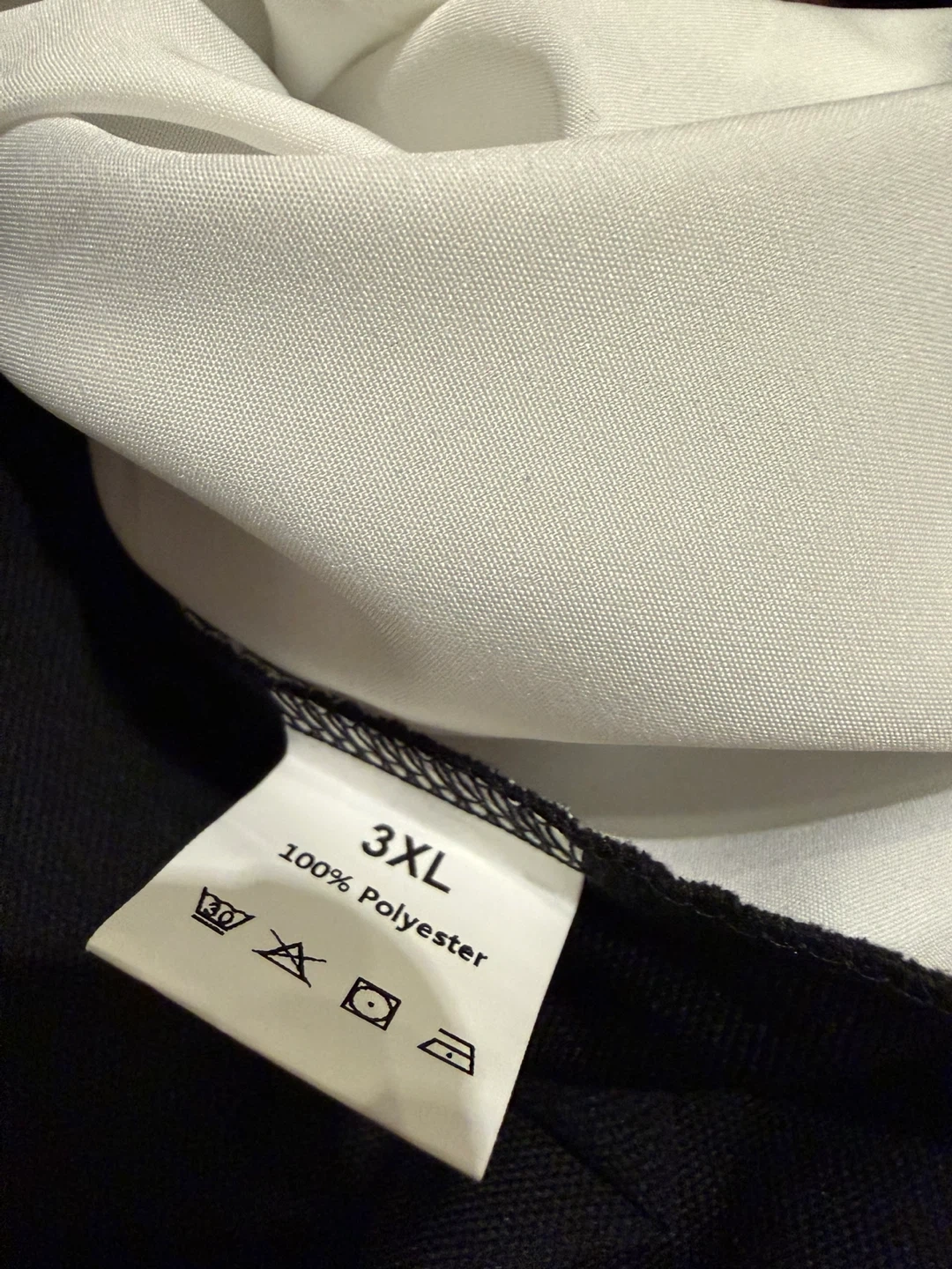 Black long sleeve shirt with a white collar. Made from 100% polyester. Size 3XL.