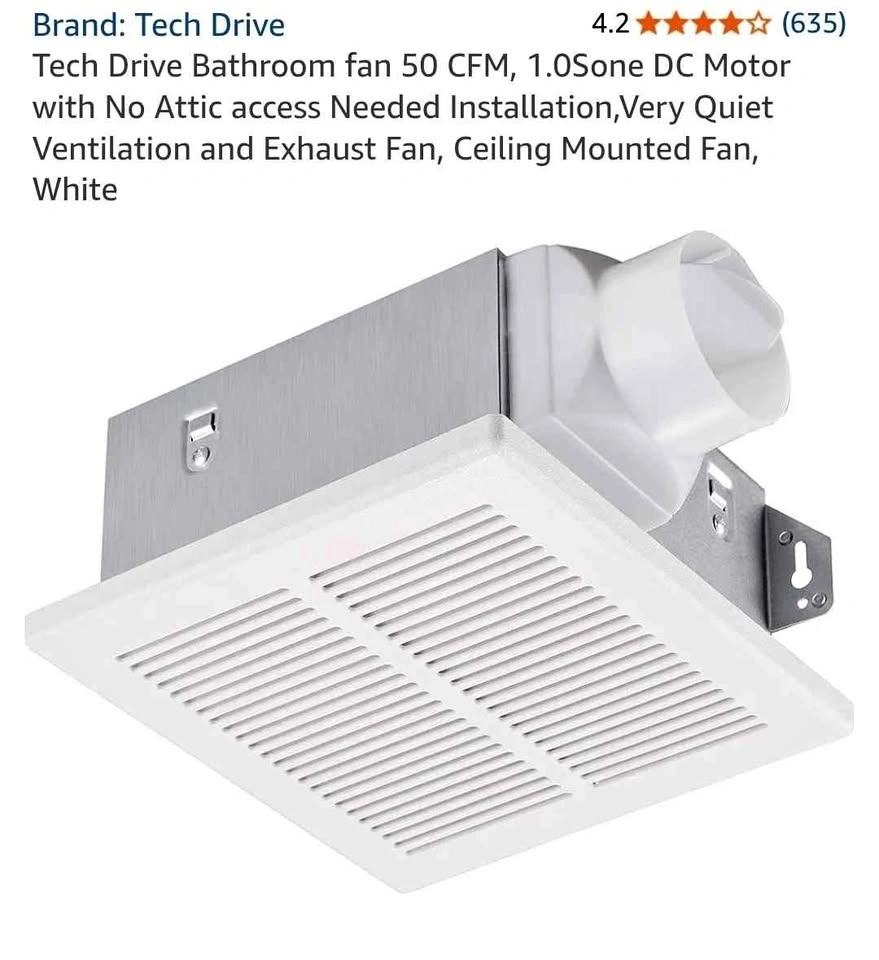 Tech Drive Bathroom fan 50 CFM, 1.0Sone DC Motor, Very Quiet