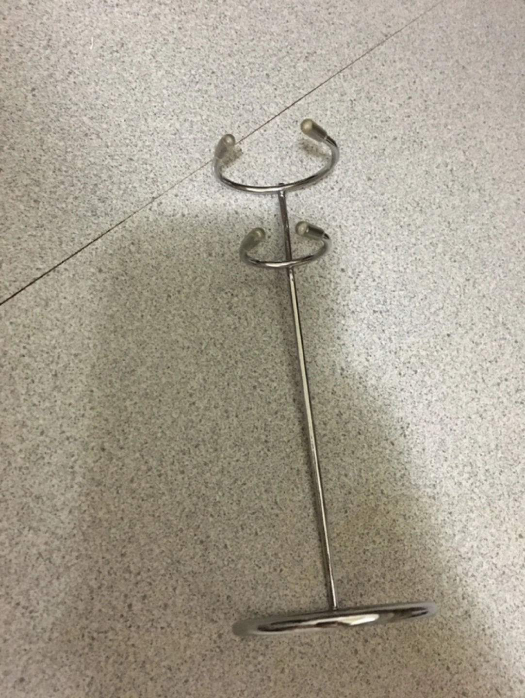 This is a metal stand designed to hold ice cream cones. It's made of shiny metal with a circular base and has three holders for cones. It's great for serving or displaying ice cream cones!